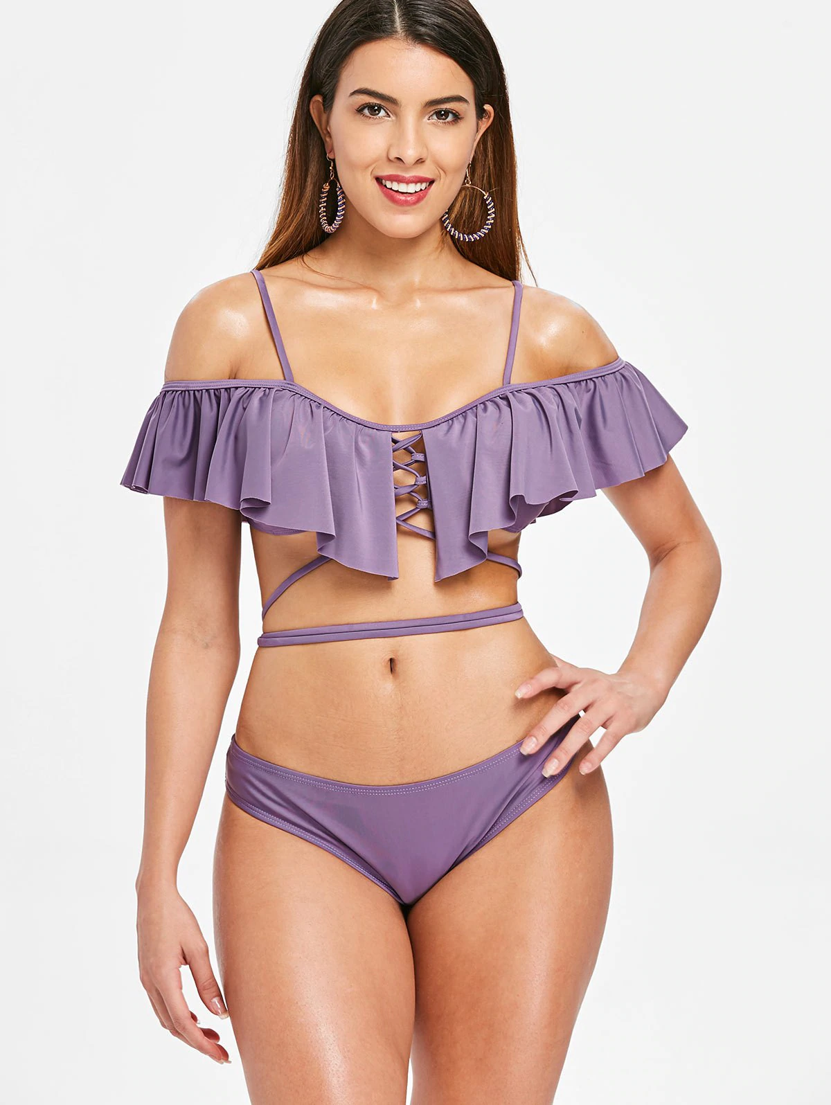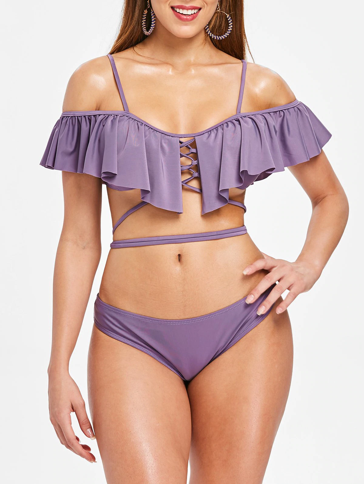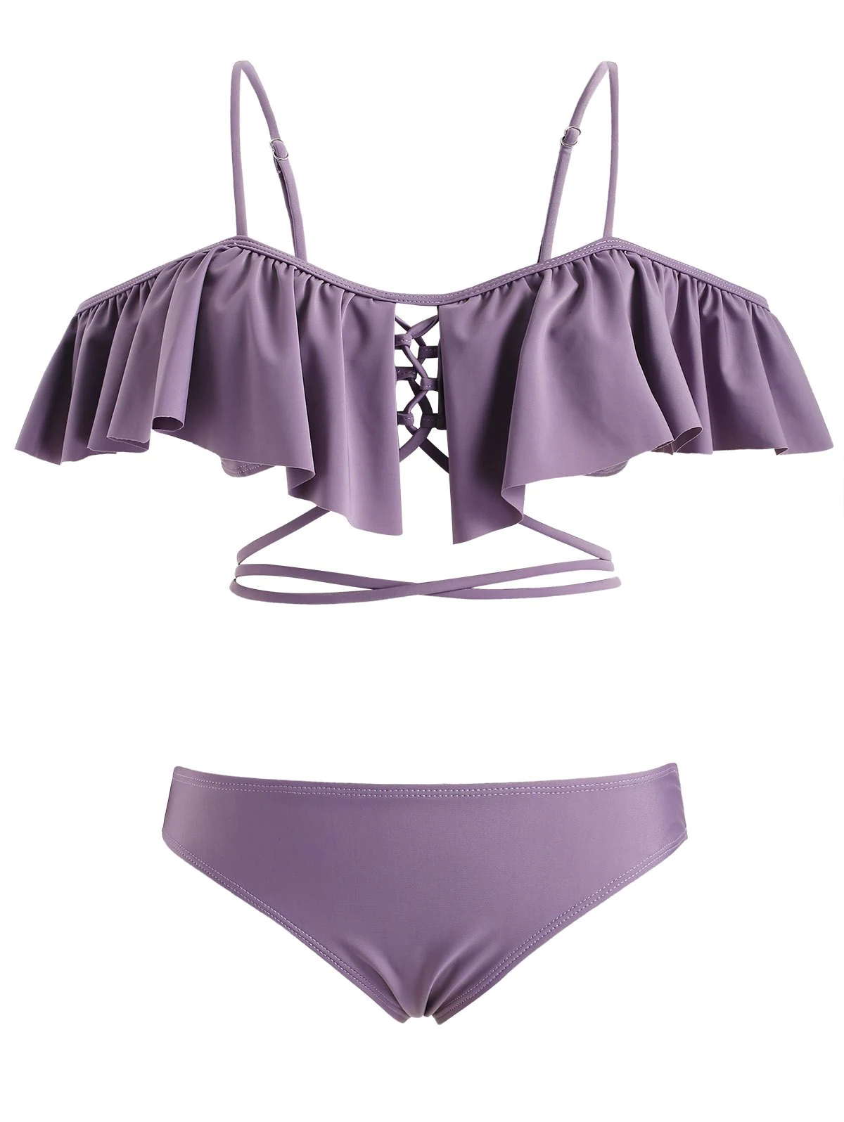 Lace Up Flouncing Scrunch Bikini