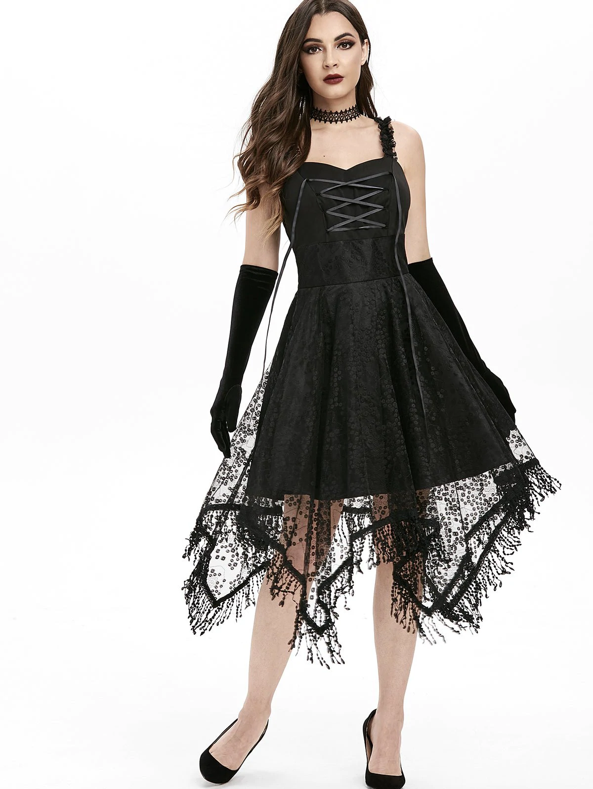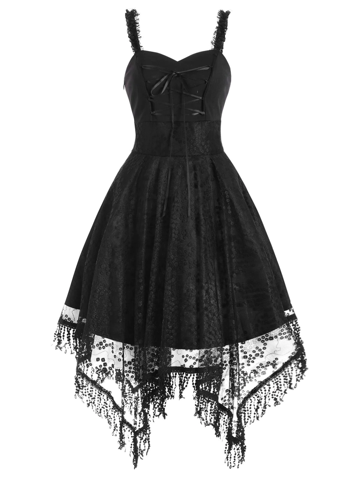 Lace-up Fringed Handkerchief Lace Dress