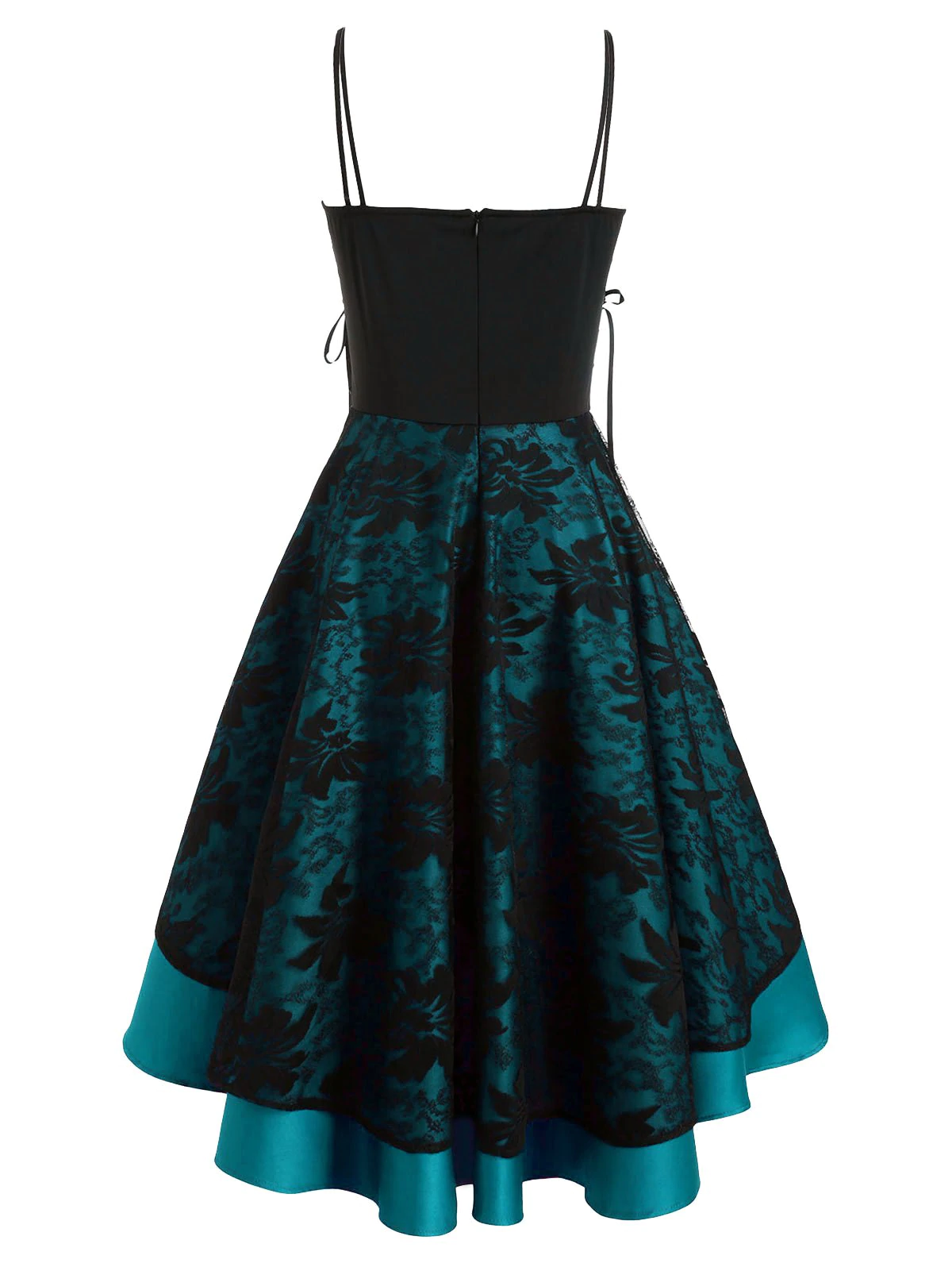 This lace dress provides a beautifully feminine silhouette, as well as incredible elegance, with its high low hemline which helps to show off your slim calves. Additional strap detail appears in the front adds decorative visual detail, and lace-up at sides offers a chance to show off your slim waist.