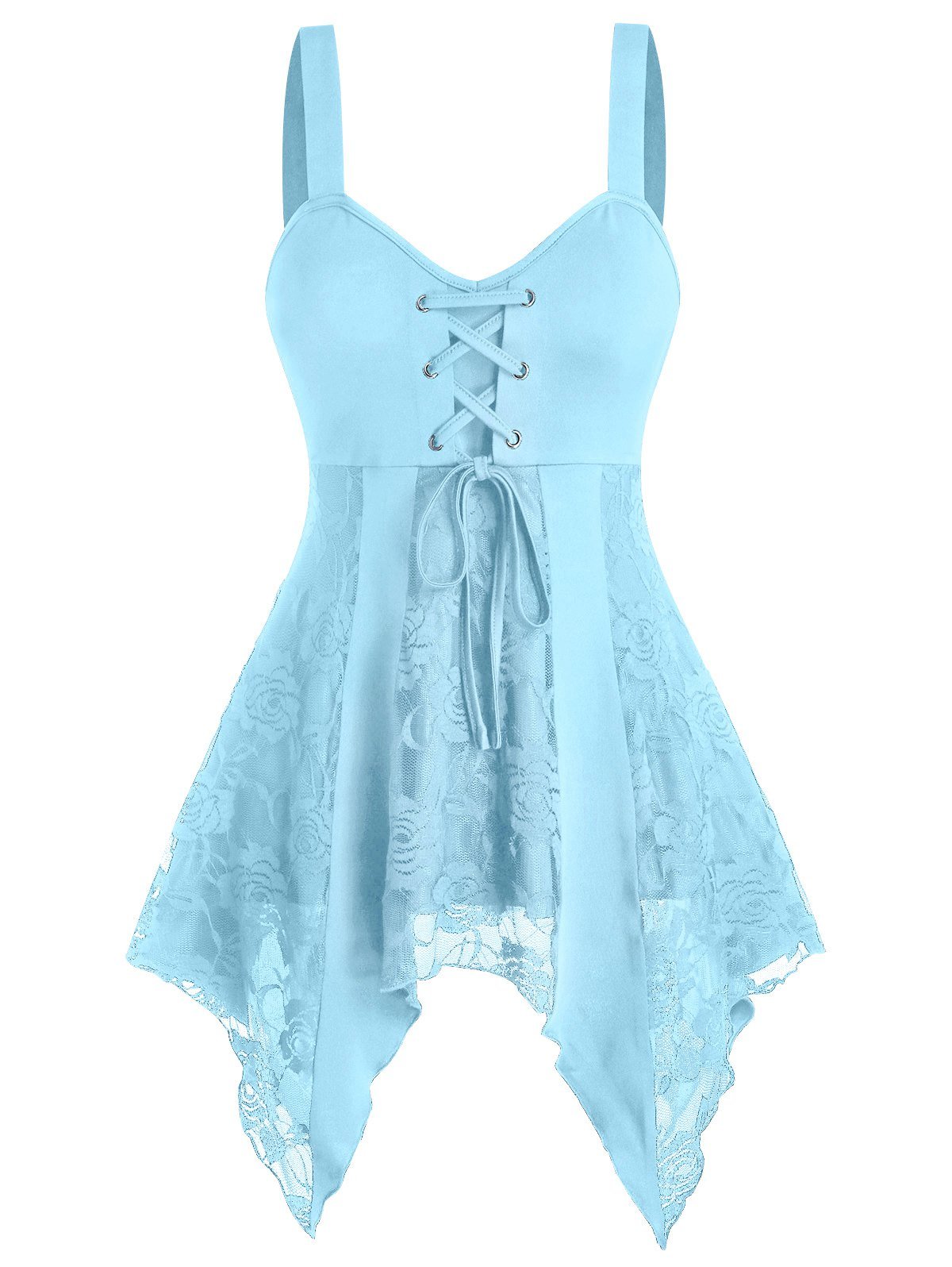Lace Up Lace Panel Asymmetrical Cami Tank Top