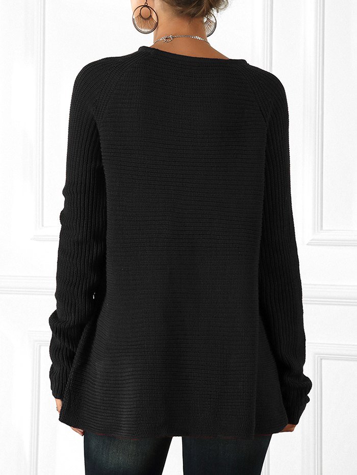 Lace-up Raglan Sleeve Tunic Sweater