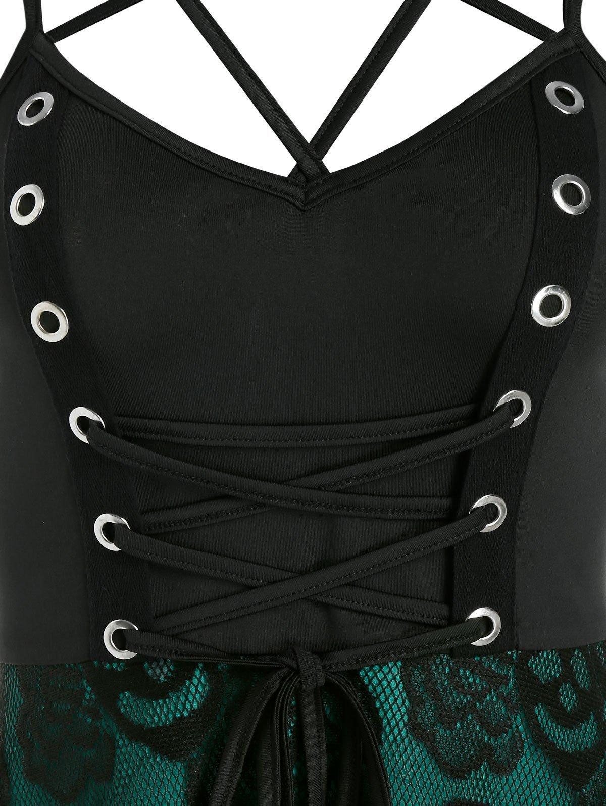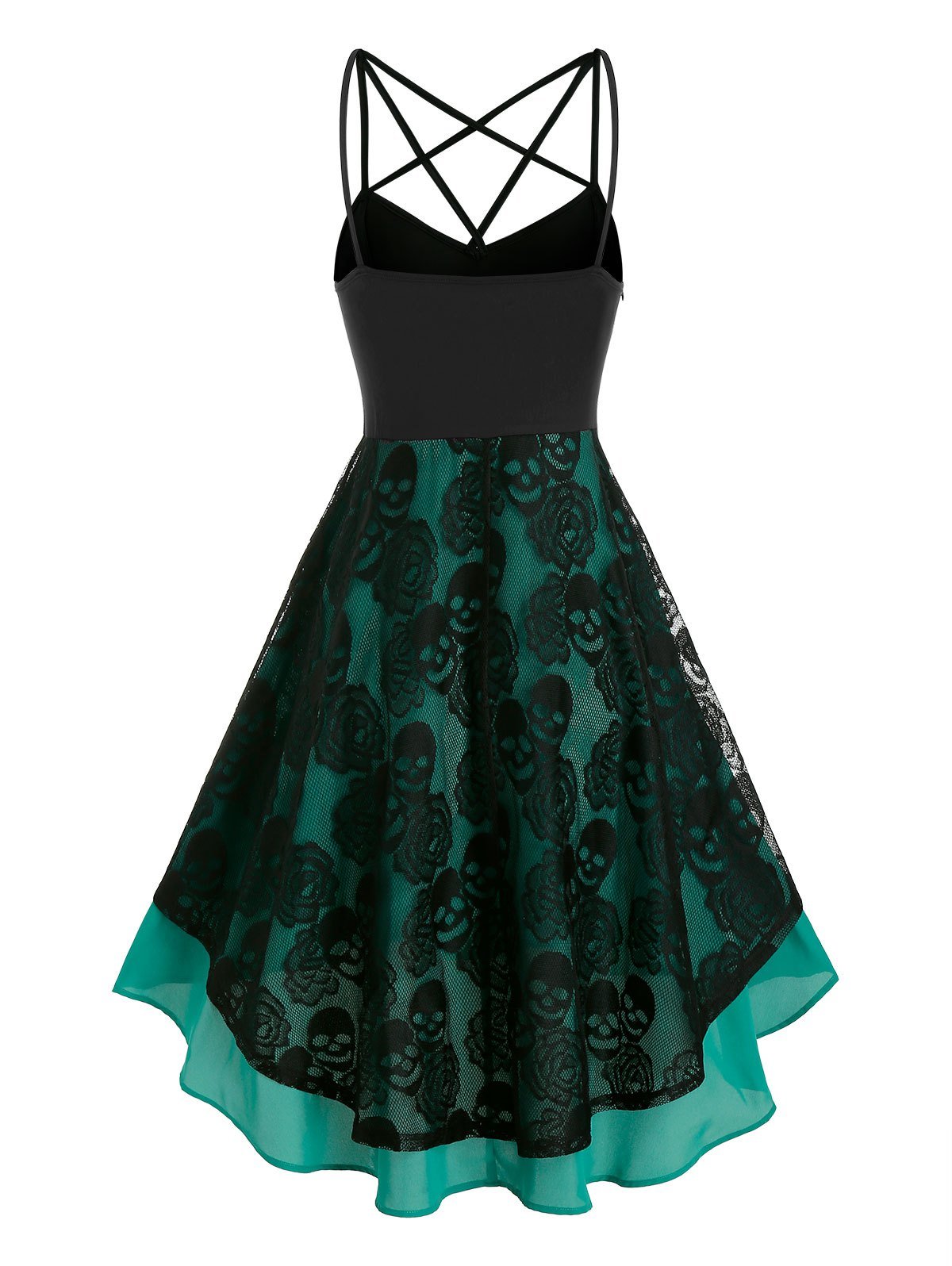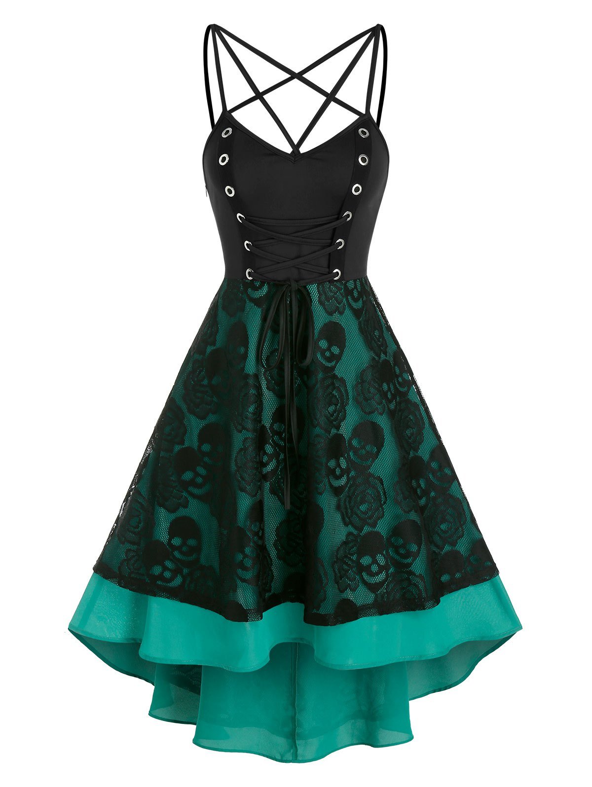 Lace Up Skull Pattern Layered Lace High Low Dress