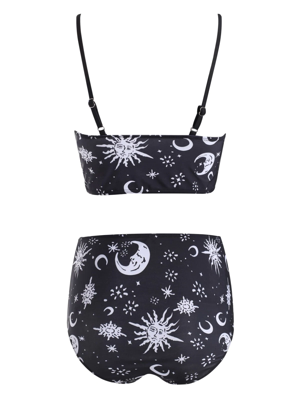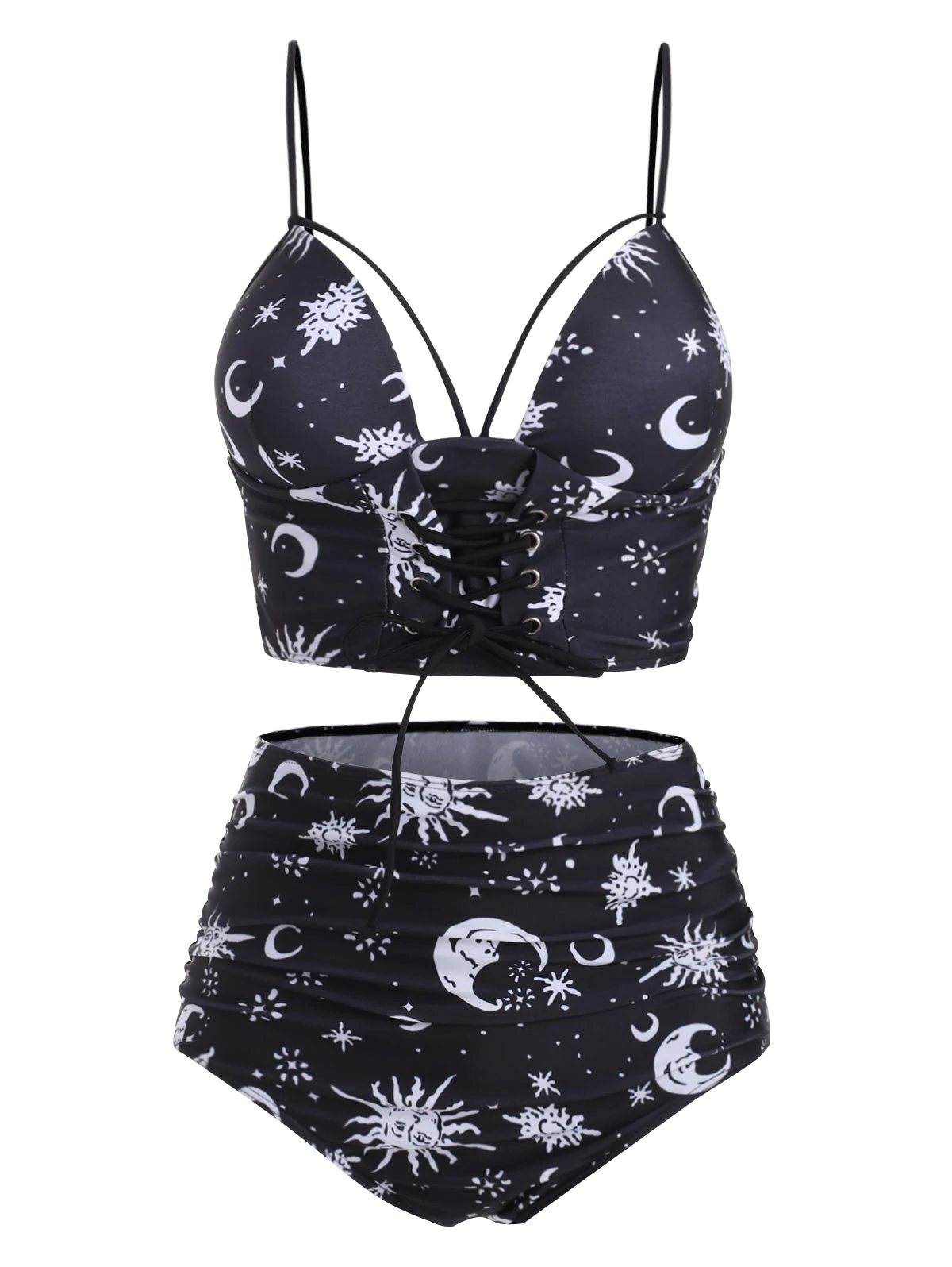 Lace Up Sun and Moon Padded Tankini Swimsuit