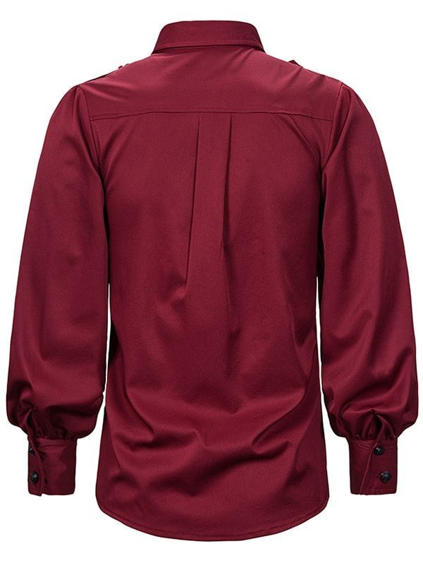 Halloween Poet Sleeve Bat Hem High Low Button Up Shirt