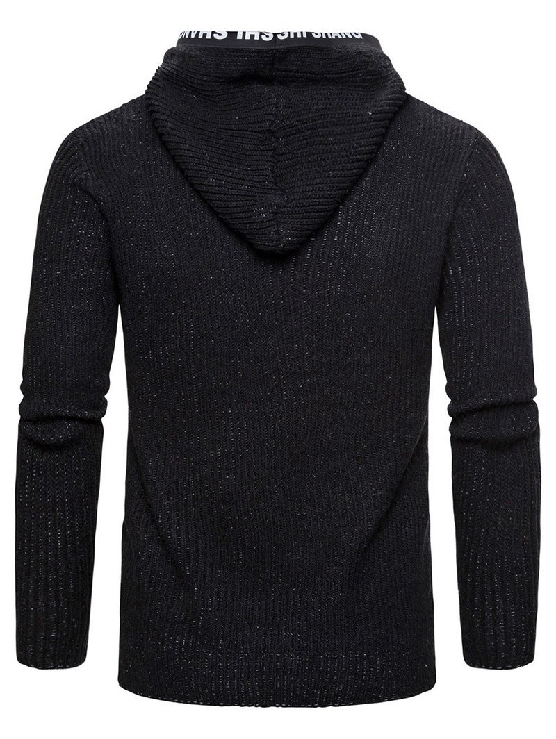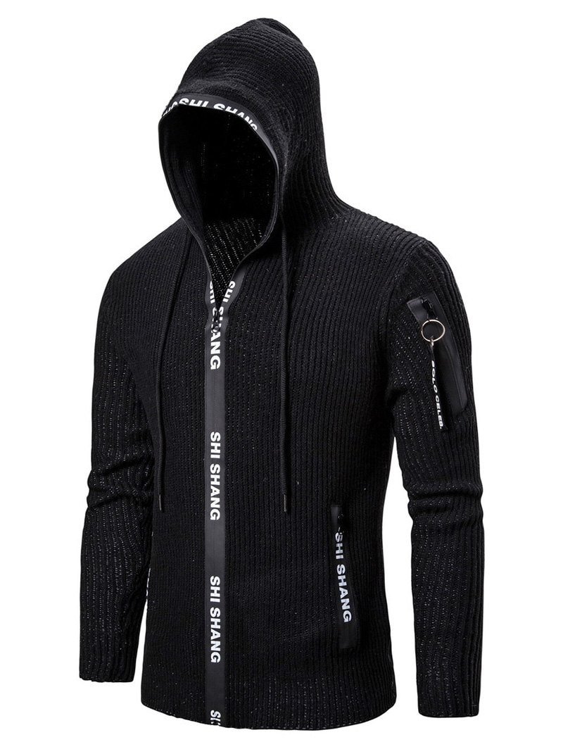 Letter Print Drawstring Knitted Hooded Cardigan