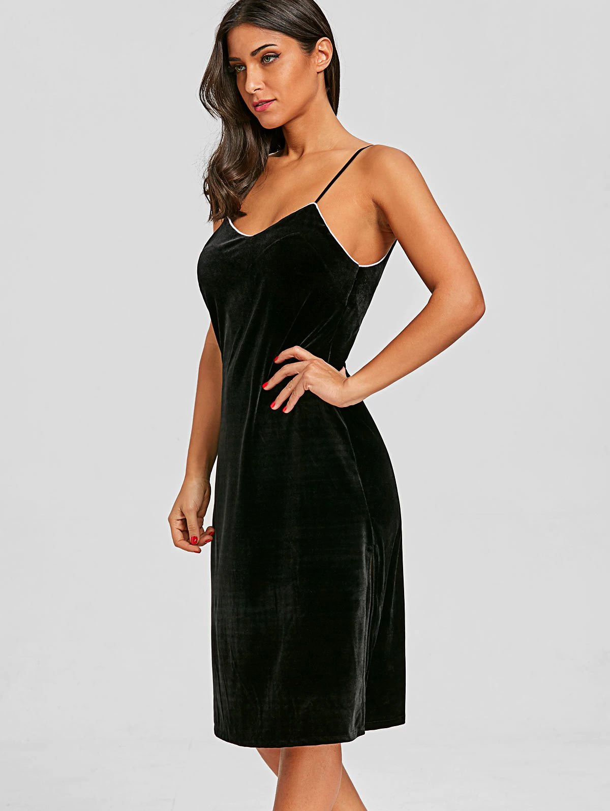 When nighttime rolls around, you'll want to instantly slip into this soft sleep chemise?. This nightdress gown features a relaxed silhouette with the side split to keep you free moving while you snooze the night away. With the soft velvet fabric, you'll get ultimate comfort through the seasons. Spaghetti straps offer you the perfect fit while a white line detail at the neckline makes for a sweet finishing touch.