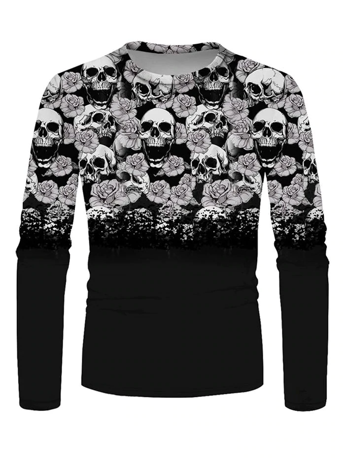 Liquid Skull Print Crew Neck Casual T Shirt