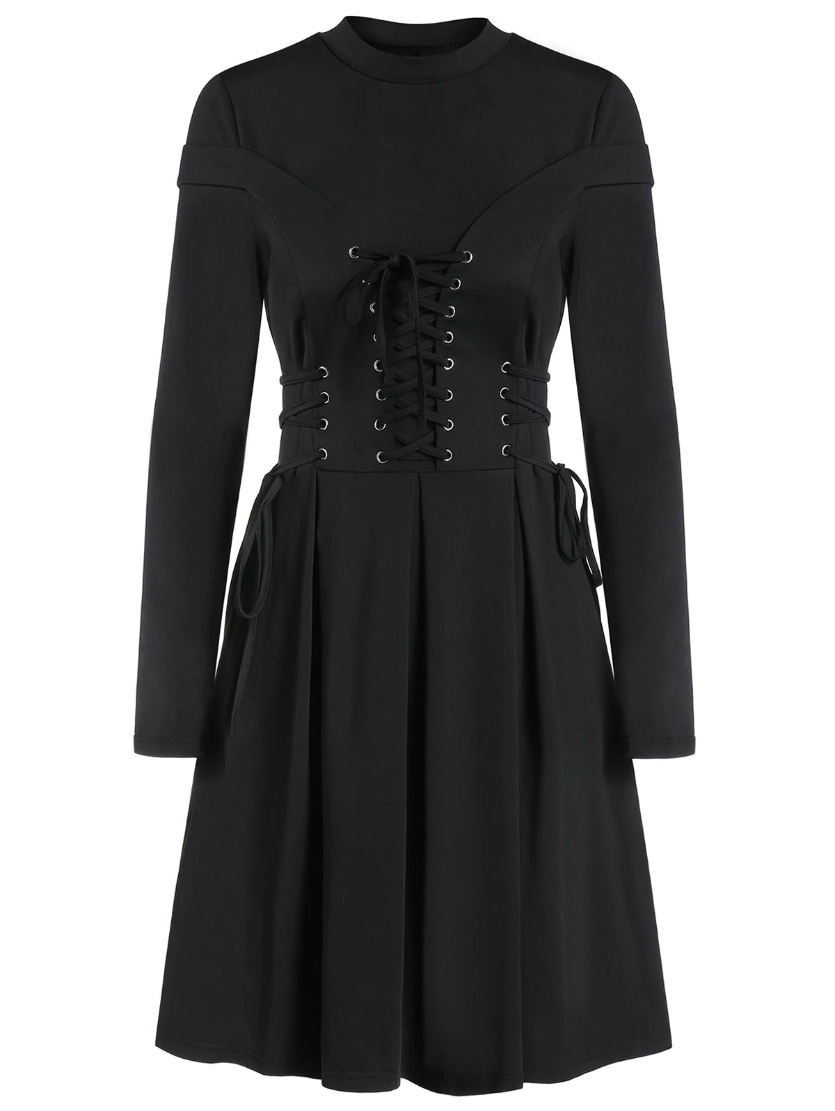 Long Sleeve Lace-up Casual Pleated Gothic Dress
