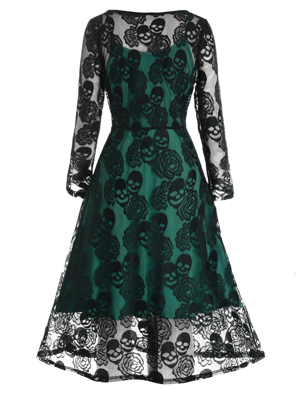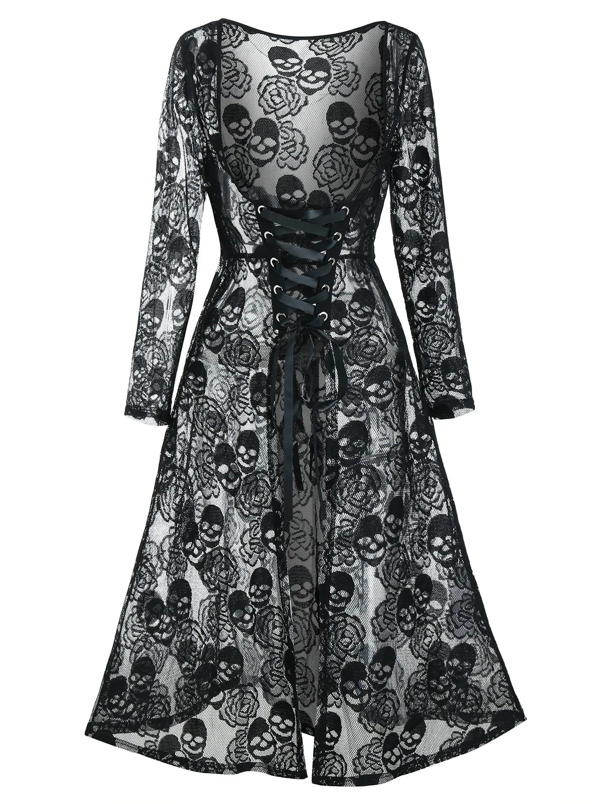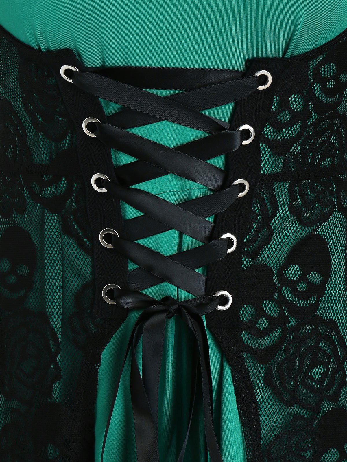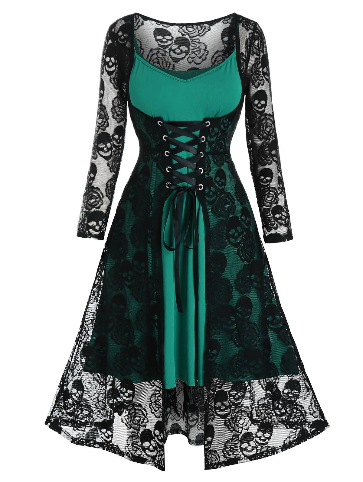 lus Size Lace Skull Lace-up Dress and Cami Dress Set