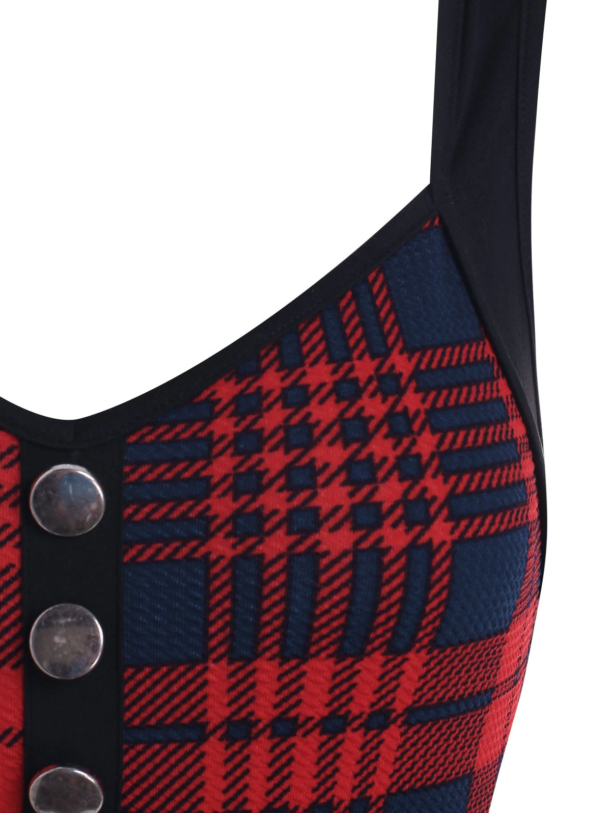 Mock Button Tartan Print Empire Waist Cami Dress