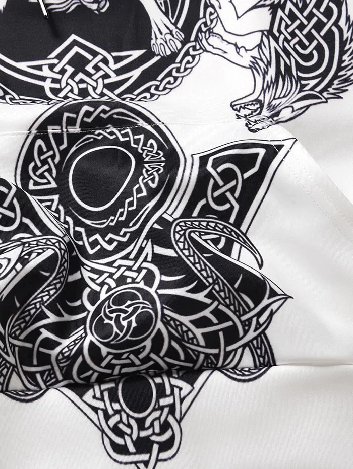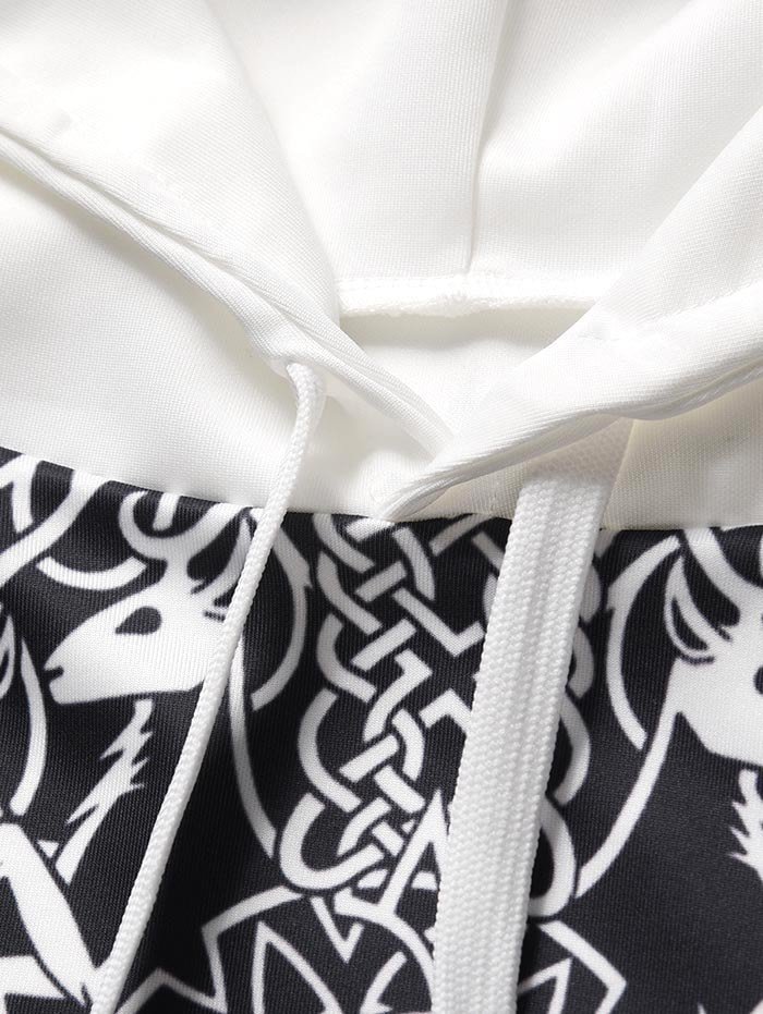 Novelty Printed Kangaroo Pocket Drawstring Hoodie