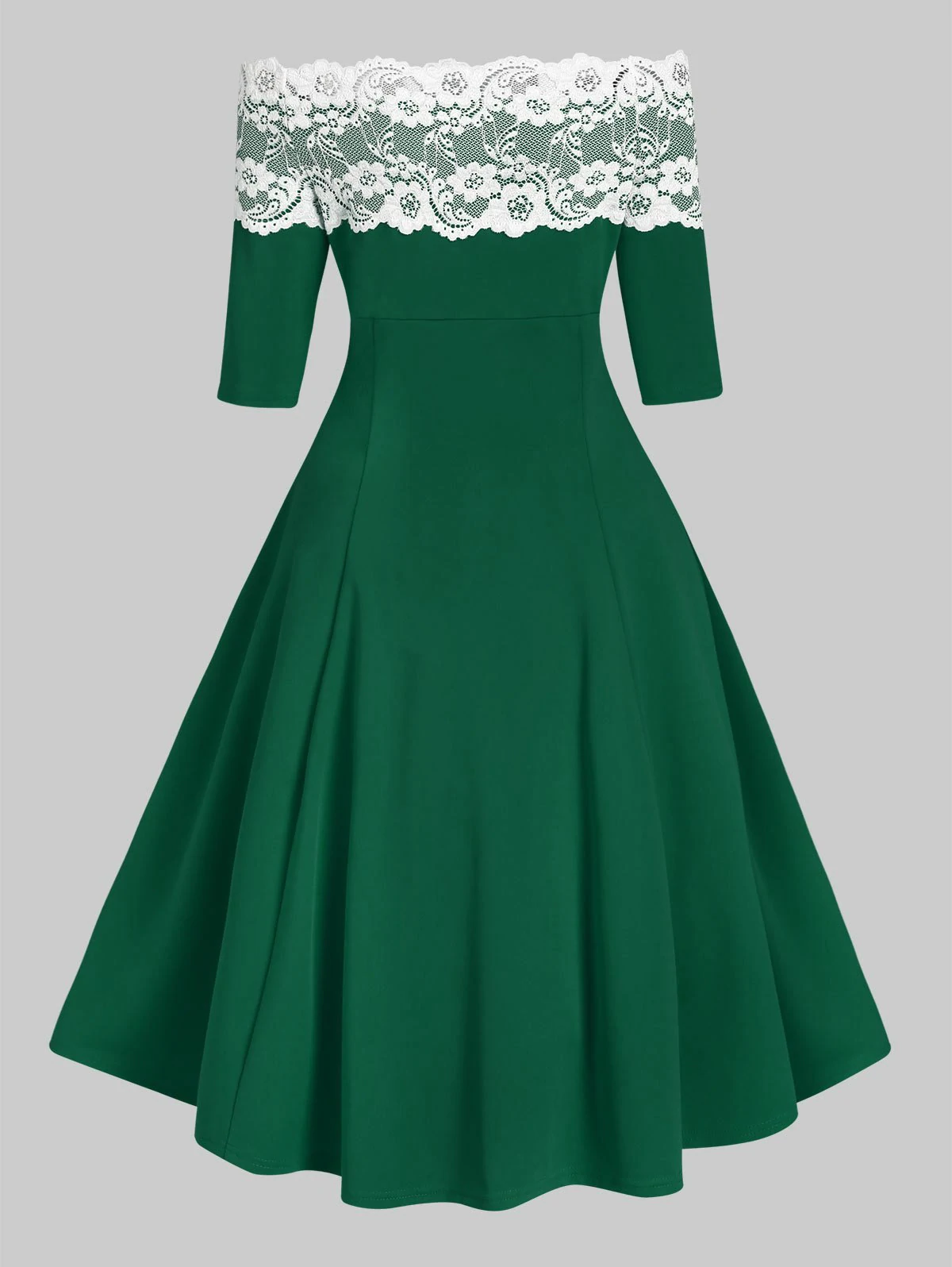 Off Shoulder Flower Lace Button Embellished Rockabilly Style Dre