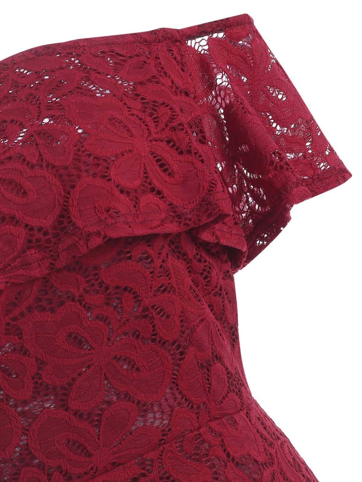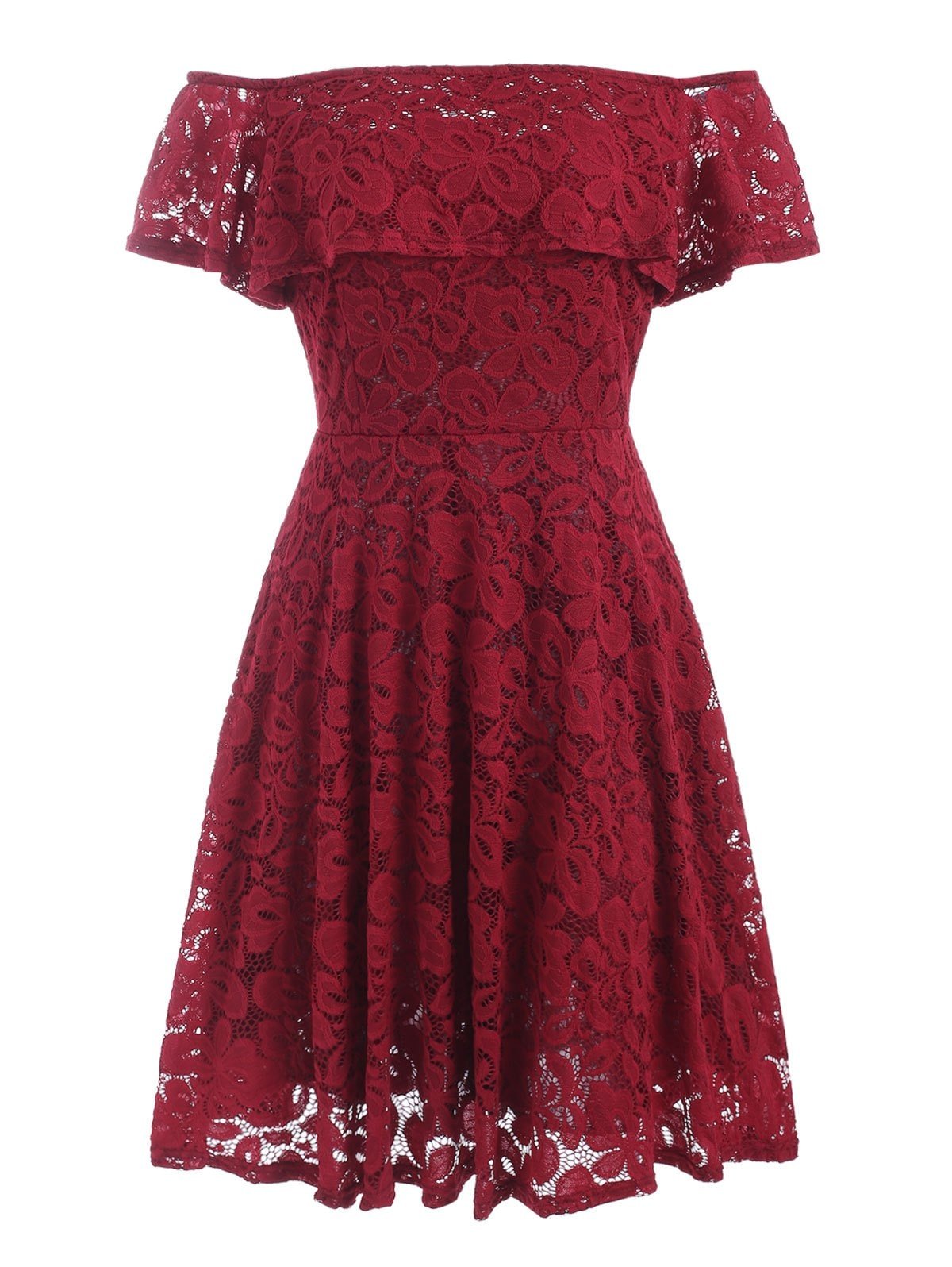 A special-occasion dress that's guaranteed to turn some heads. This dress offers the enhanced feminine appeal with an overlay of the flounced bodice and the intricate lace texture. This flowy fit-and-flare silhouette makes it just needs a simple pair of heels for an elegant evening ensemble.