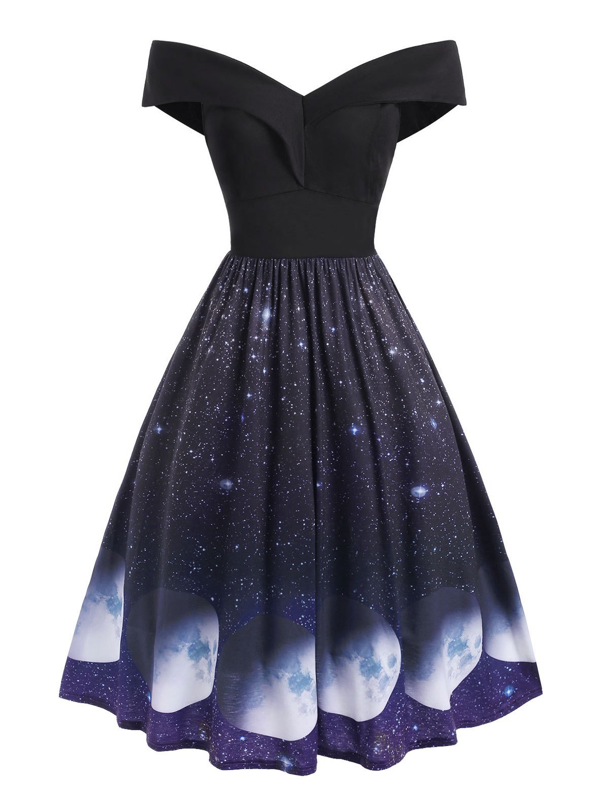 Halloween Pumpkin Cat Flower Print Halter Dress