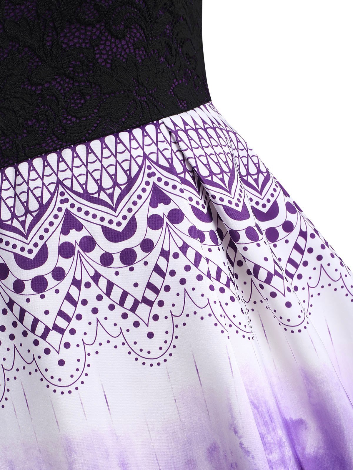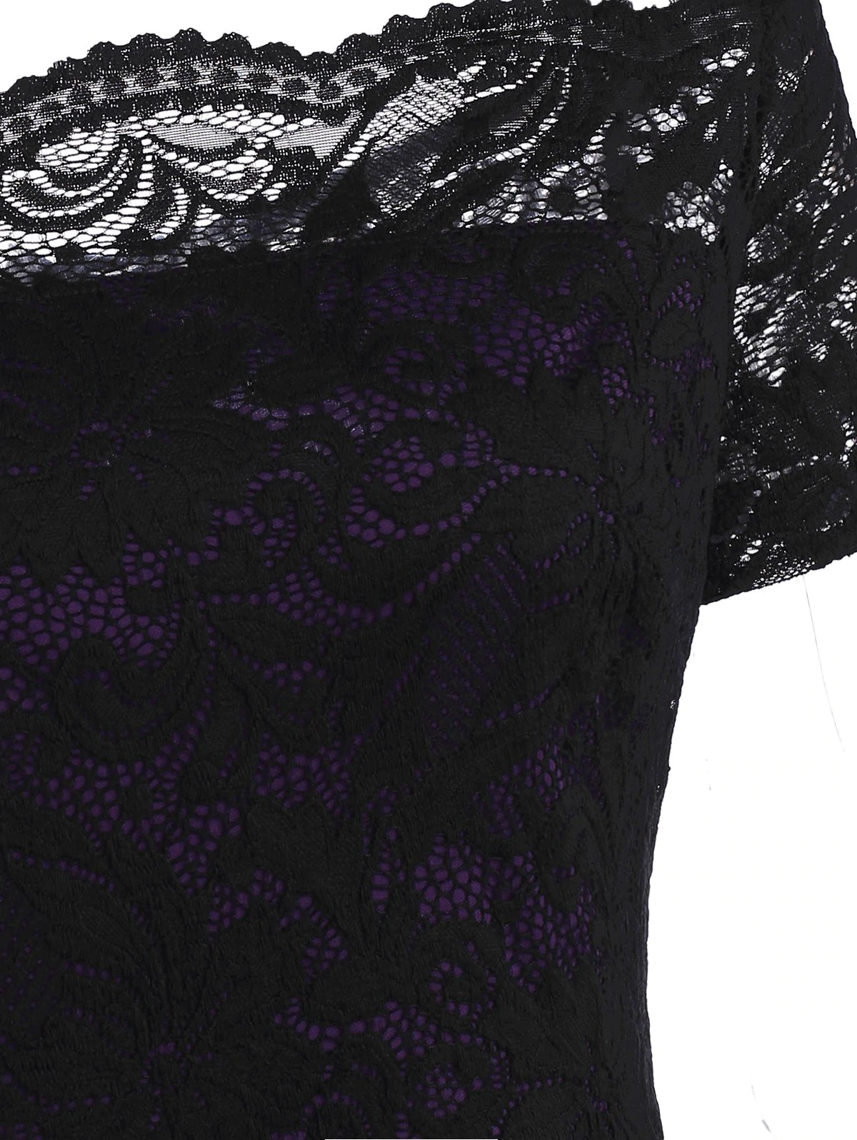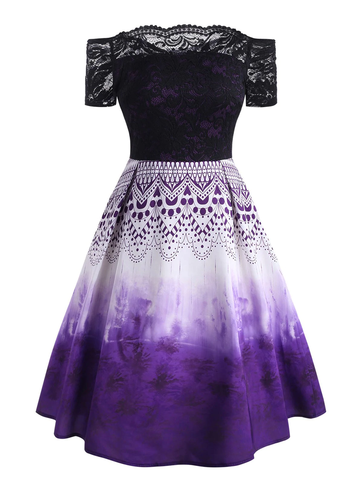 Off The Shoulder Lace Panel Printed Plus Size Vintage Dress