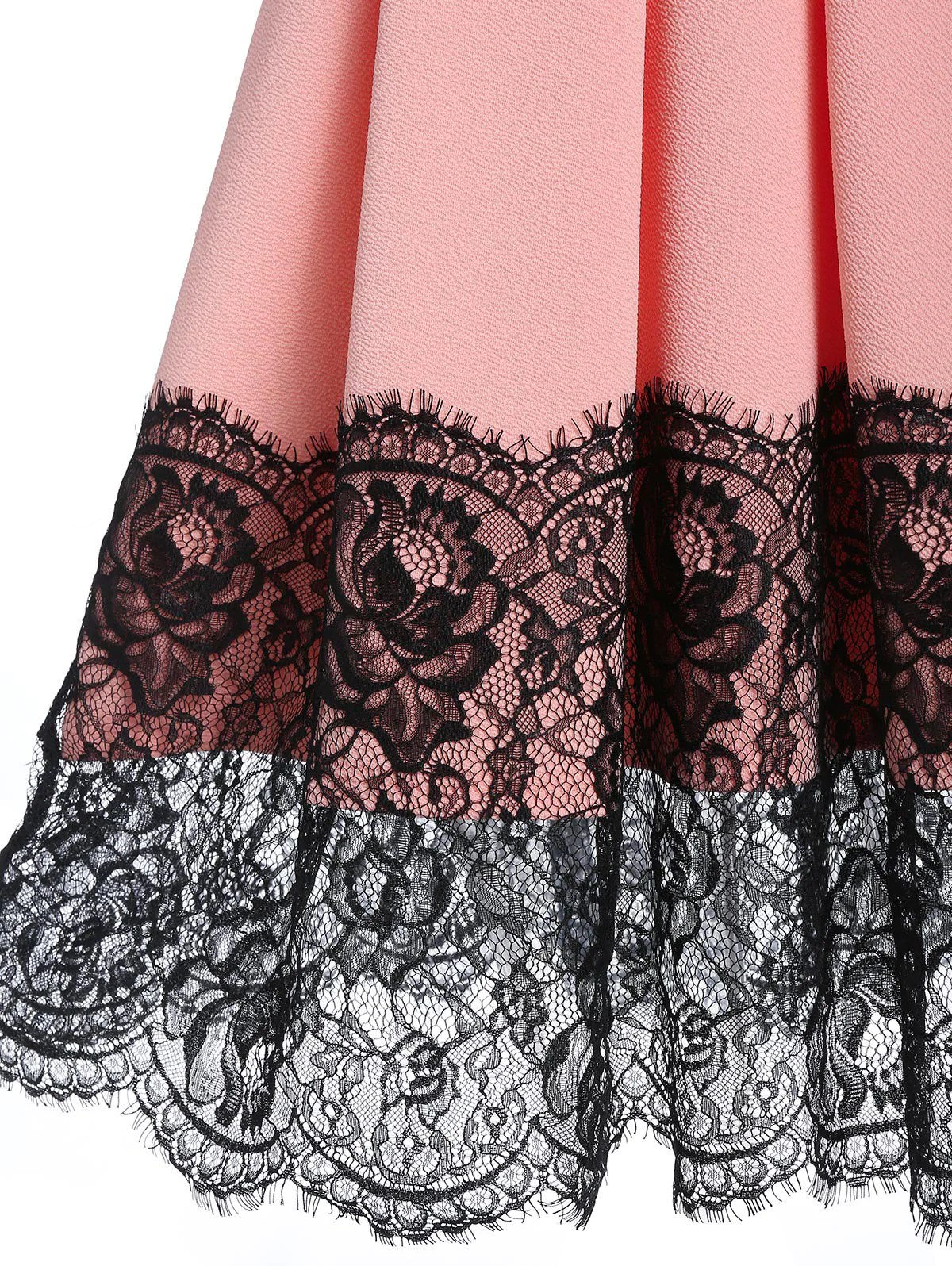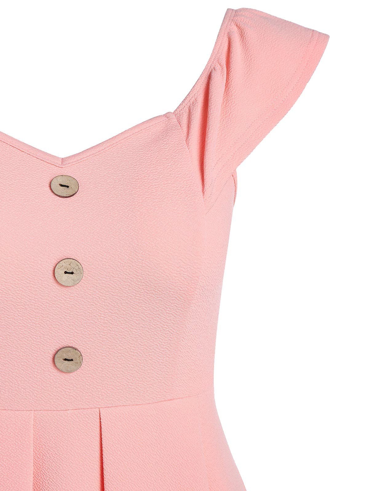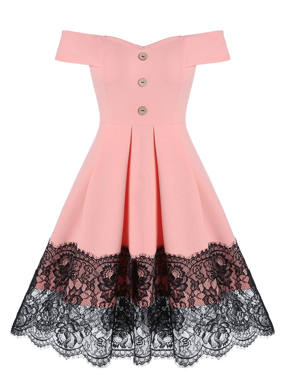 Off the Shoulder Mock Button Lace Insert Flare Dress