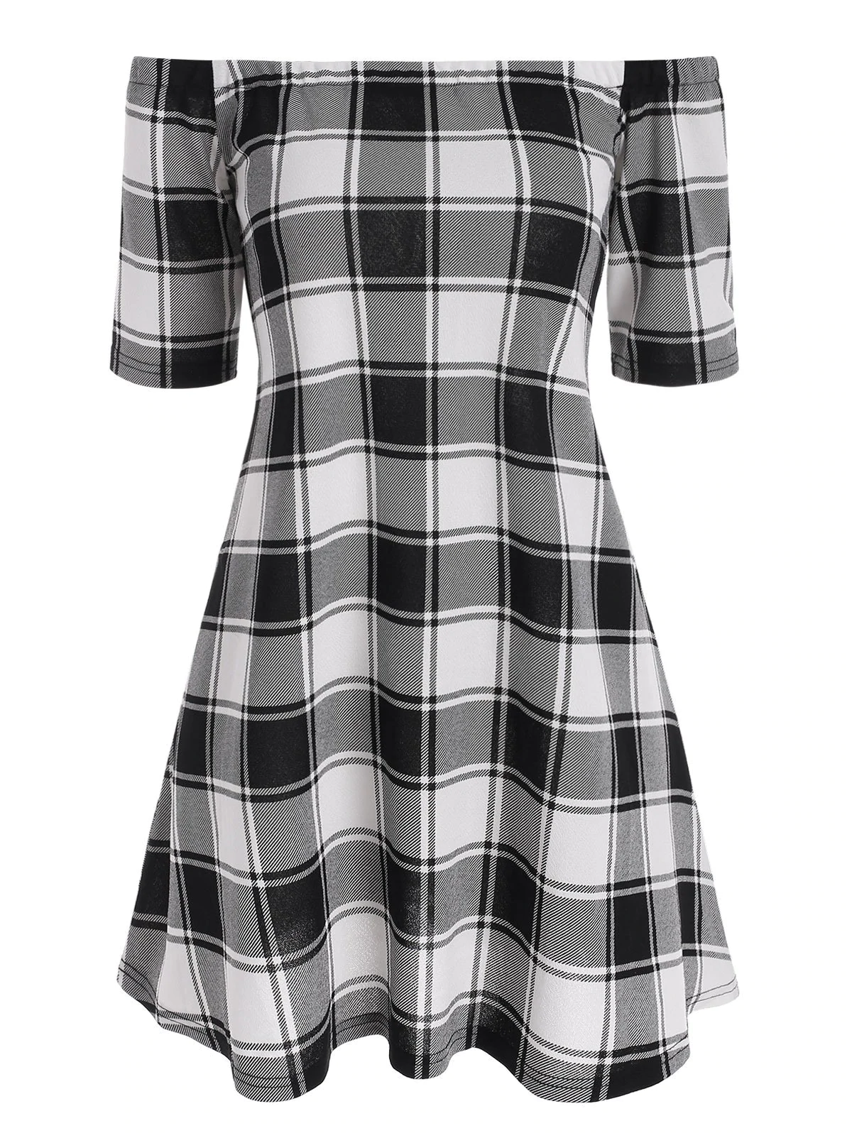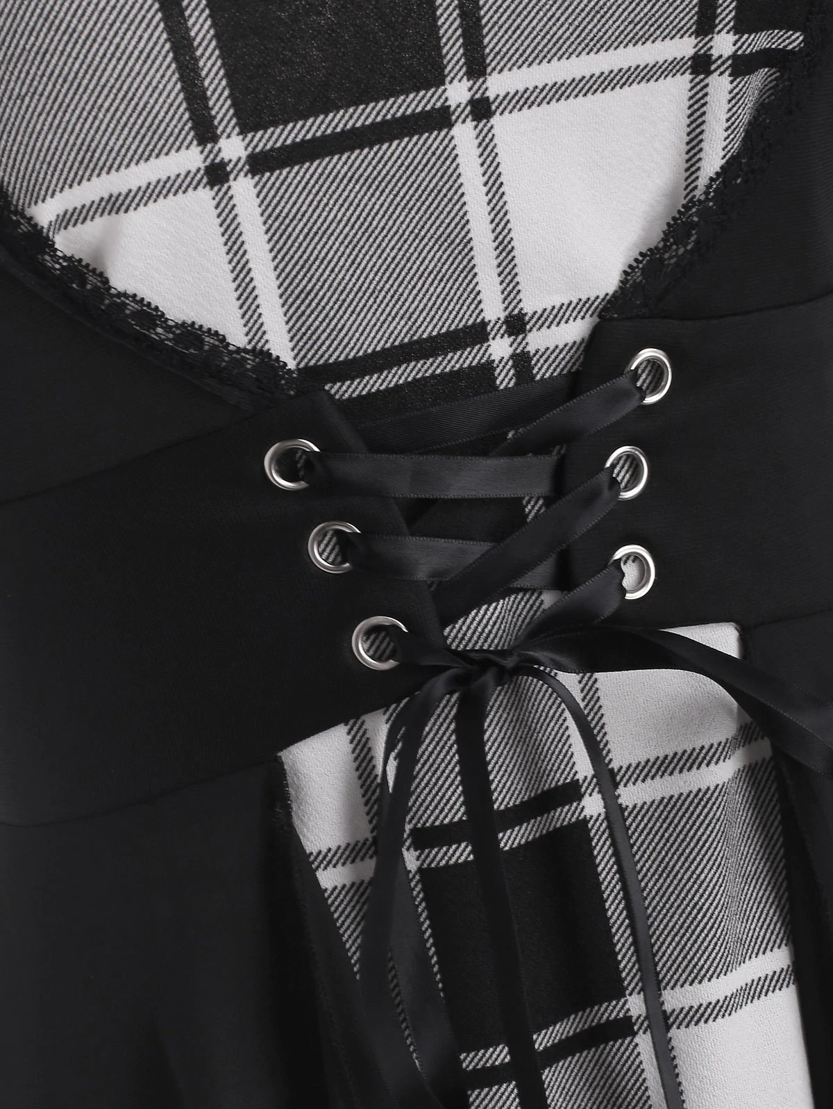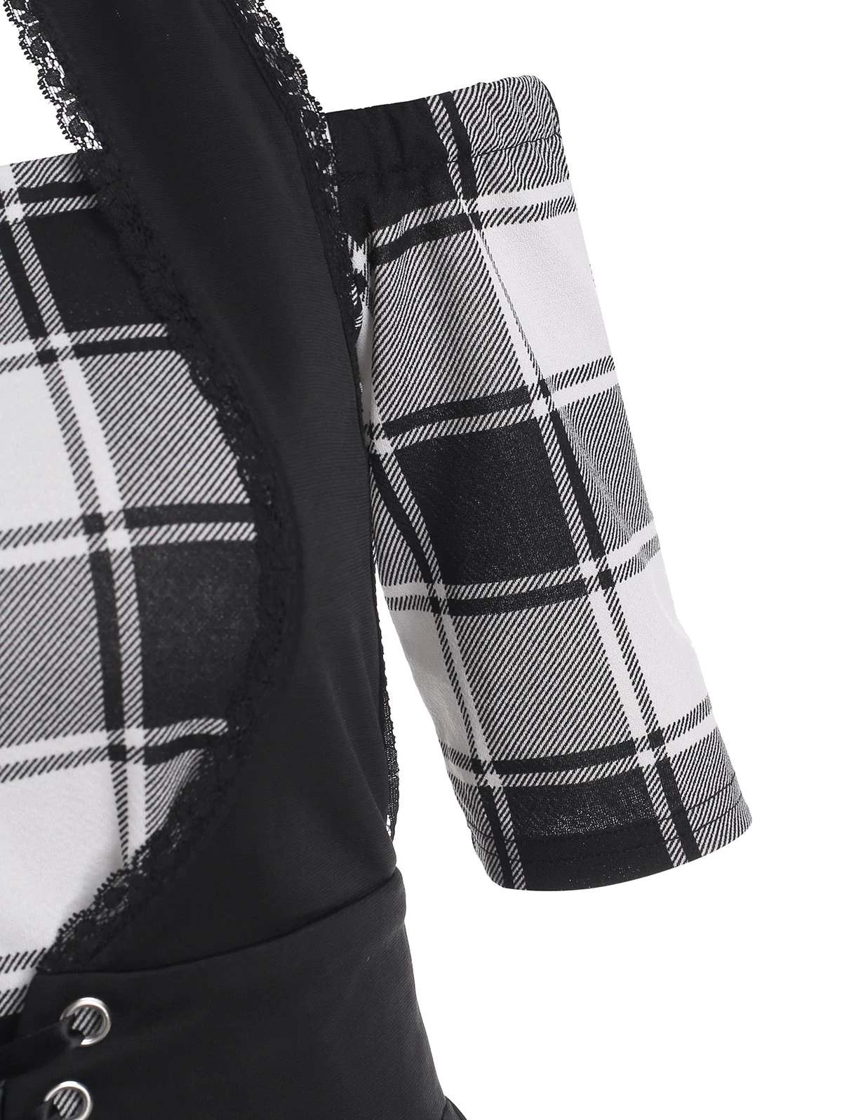 3 reviews for Plaid Off Shoulder Dress with Lace Up Halter Vest