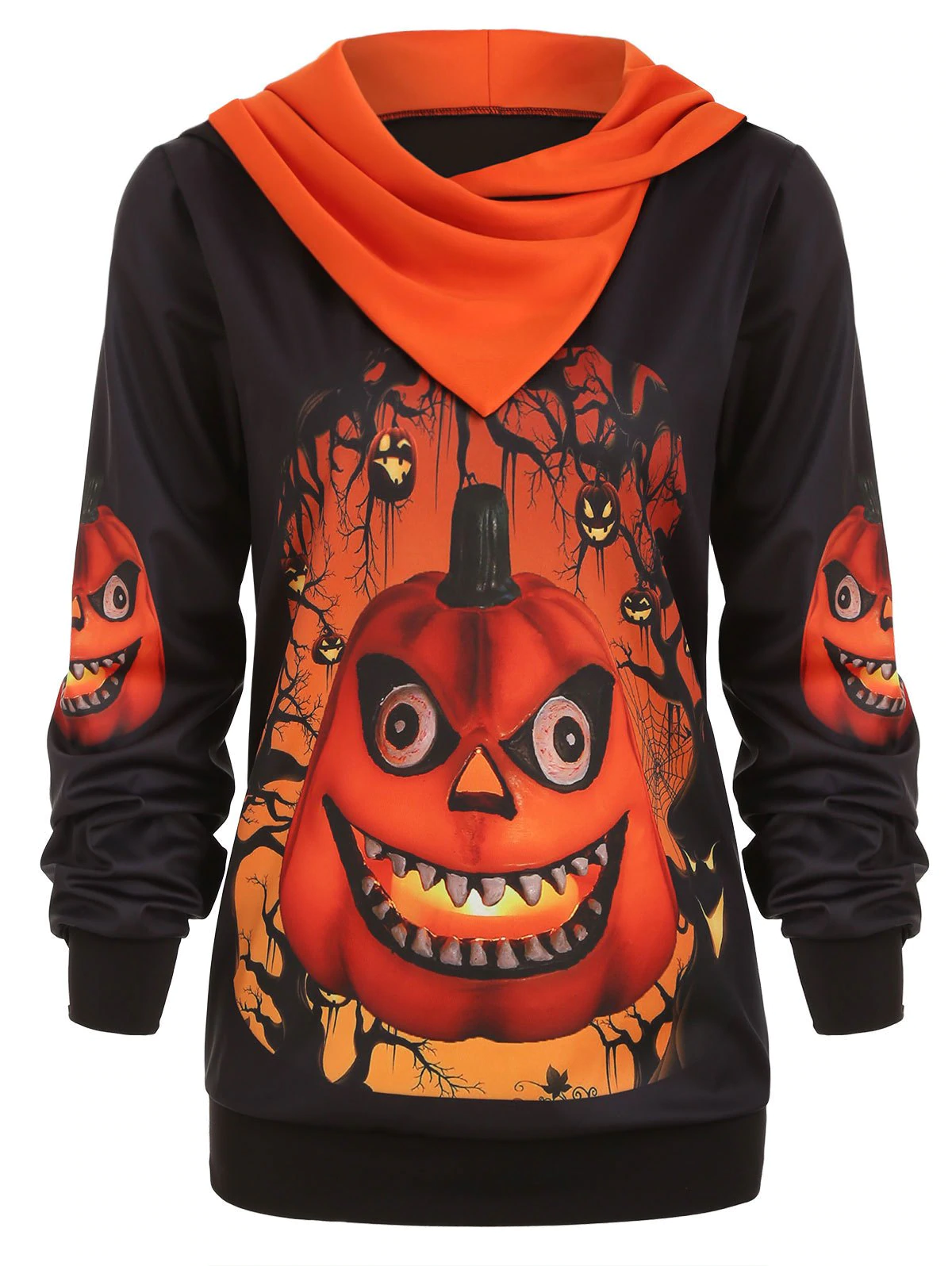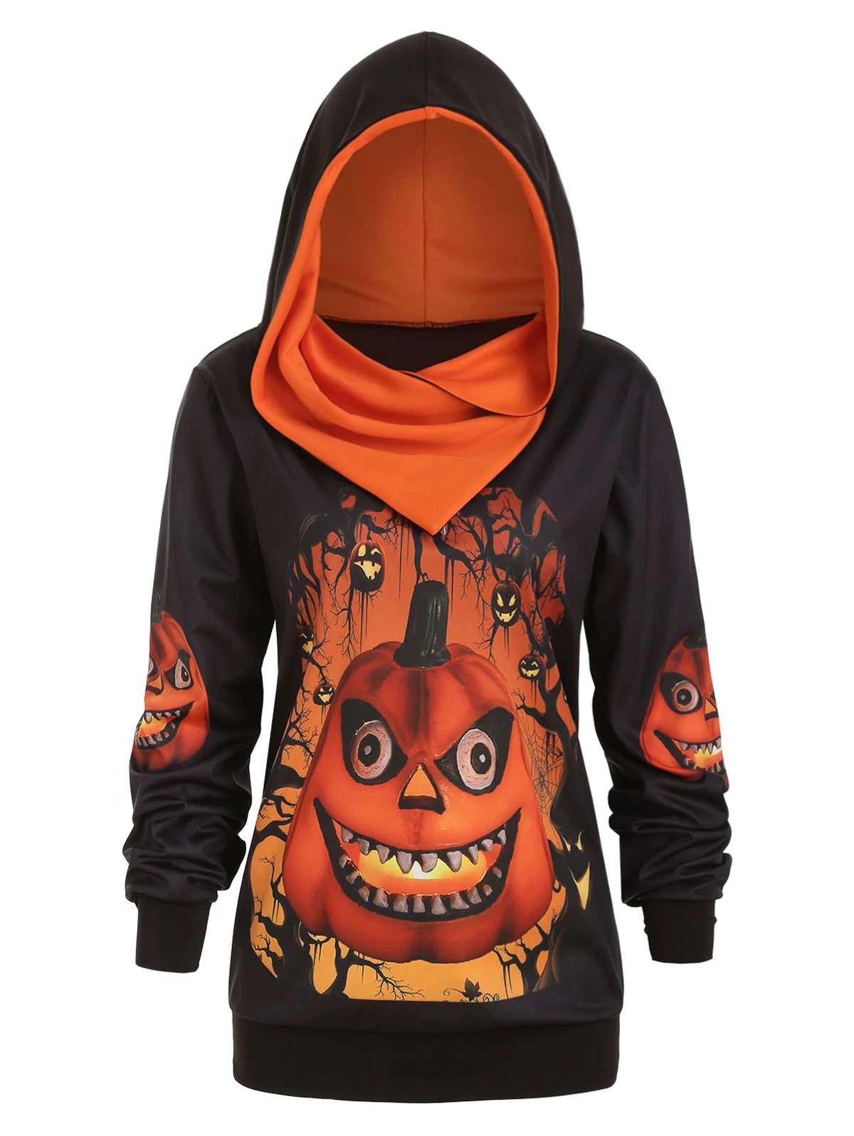 Plus Size 3D Pumpkin Print Convertible Halloween Hoodie