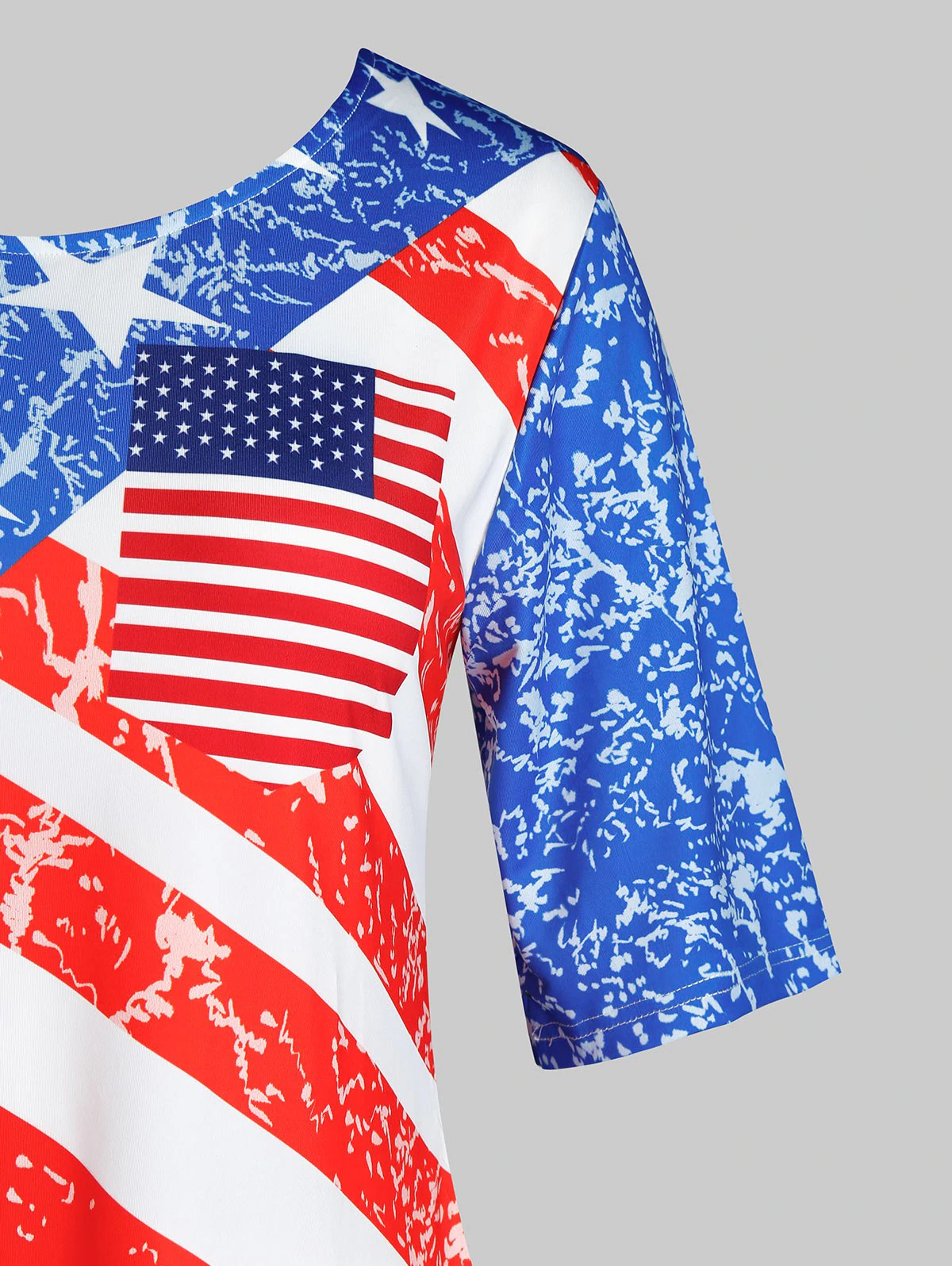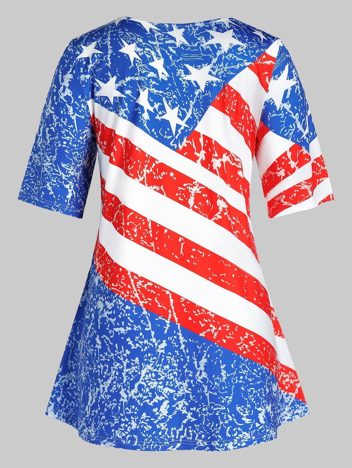 Eye-catching American flag help to enliven the style of this slightly A-line T-shirt designed with a classic round neck and short sleeves.