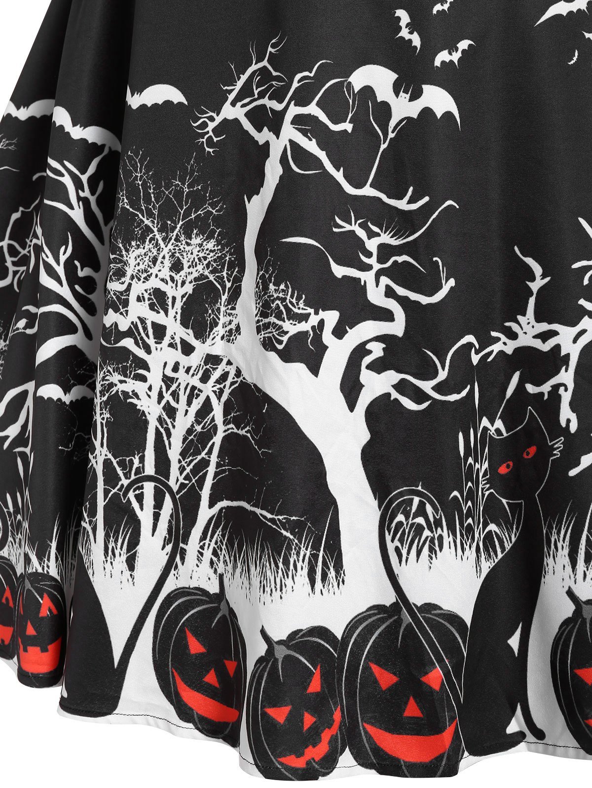 Plus Size Bat Pumpkin Print Halloween Vintage Dress