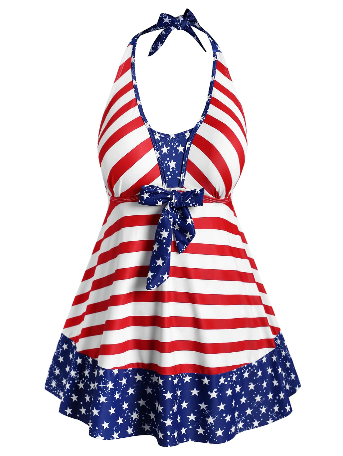 Plus Size Bowknot Halter Patriotic American Flag Tankini Swimwea