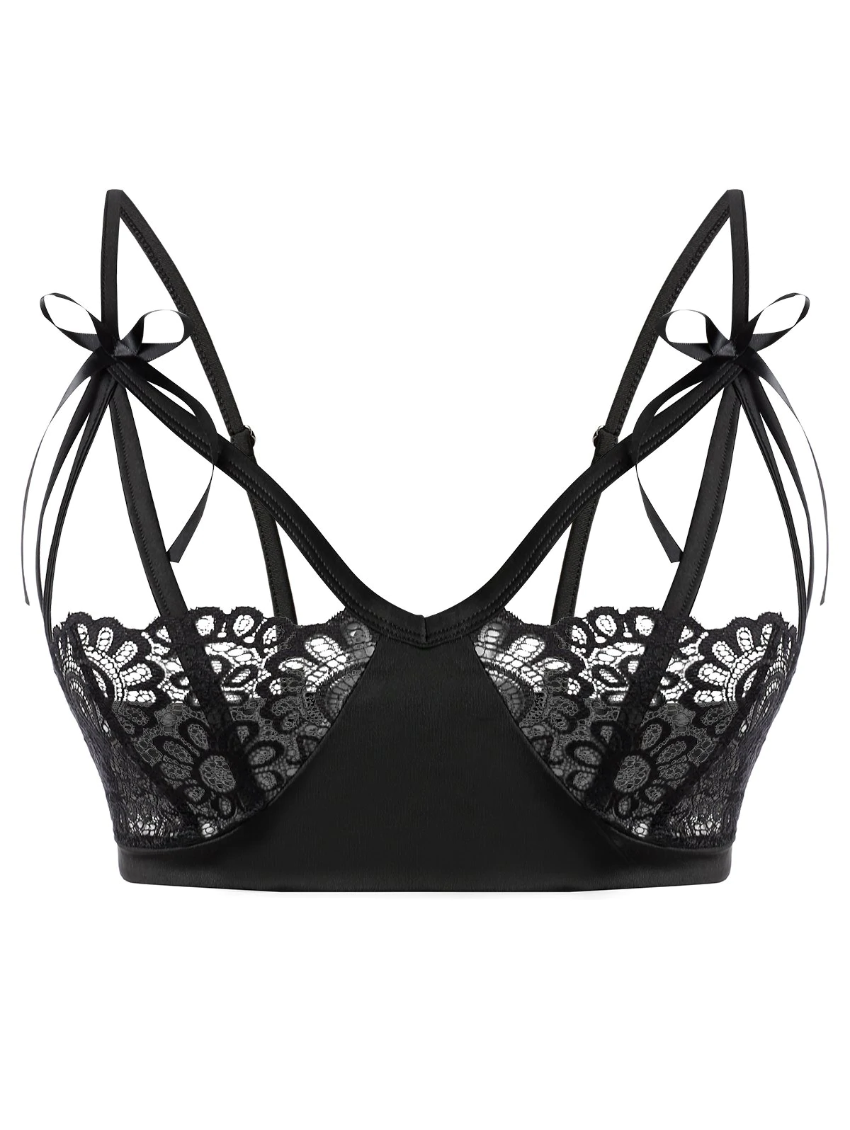 Plus Size Bowknot Lace Insert Cutout Lingerie Top