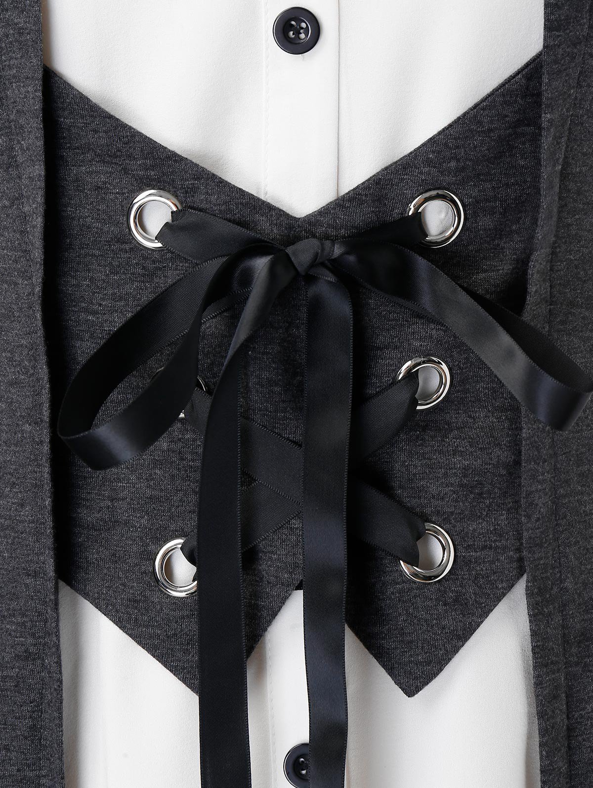 Plus Size Button Lace Up Splicing Blouse