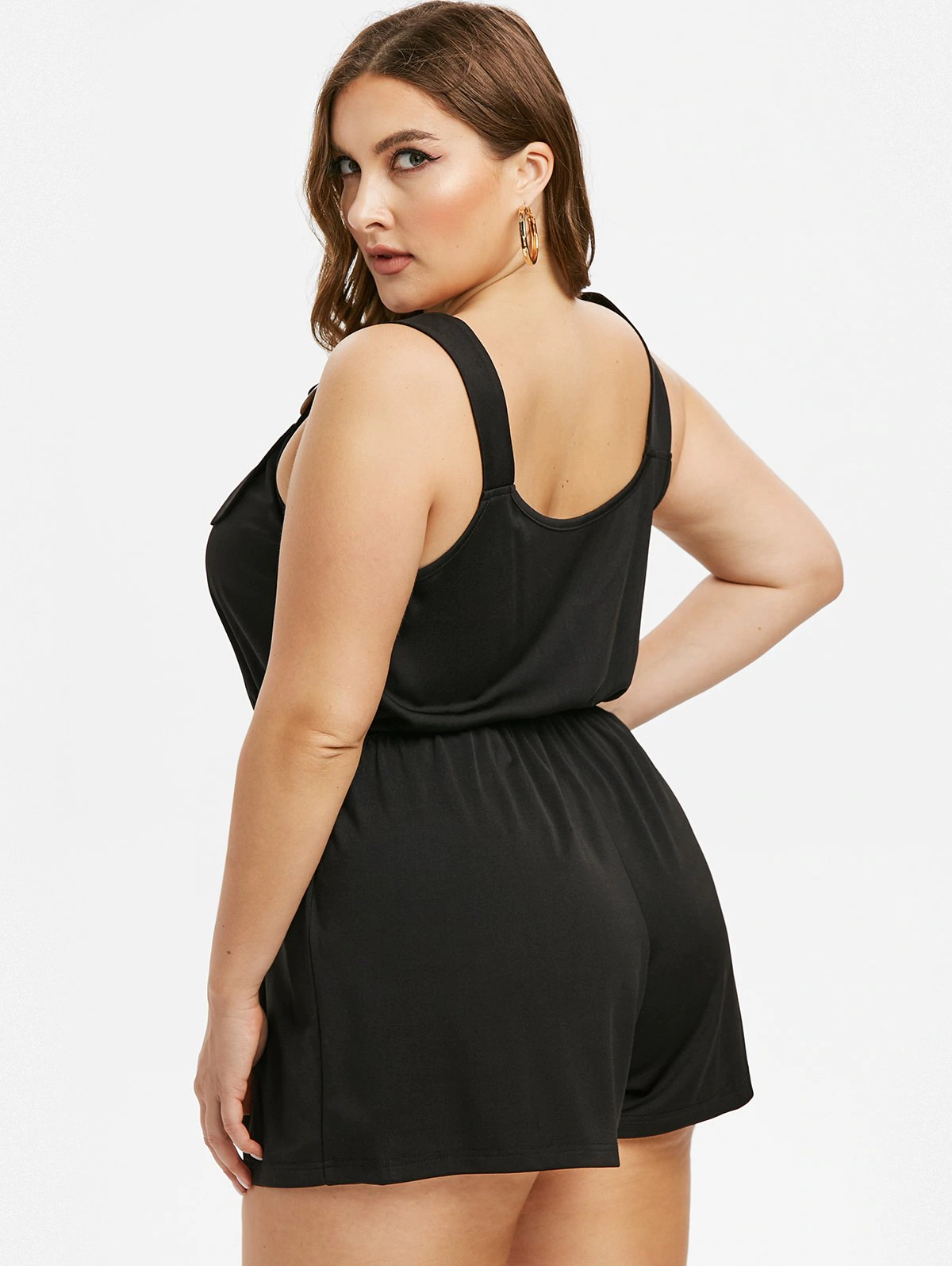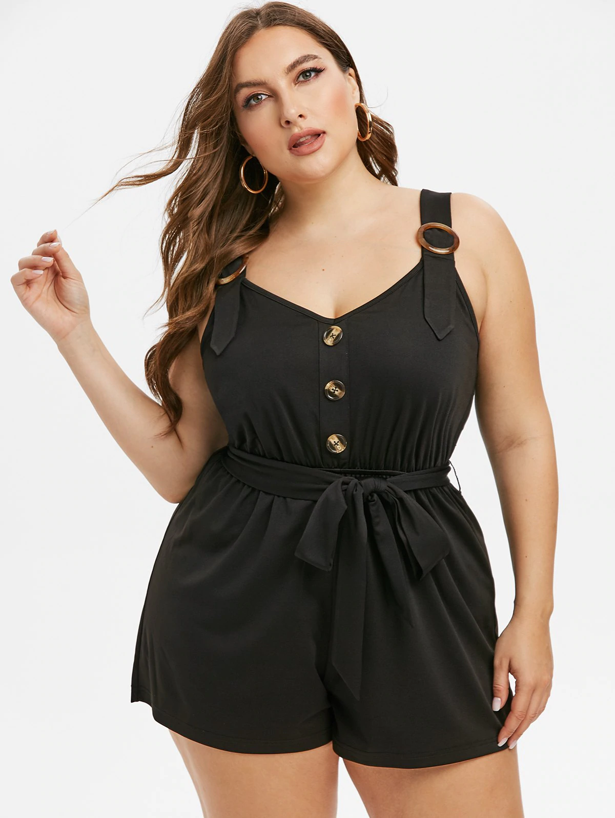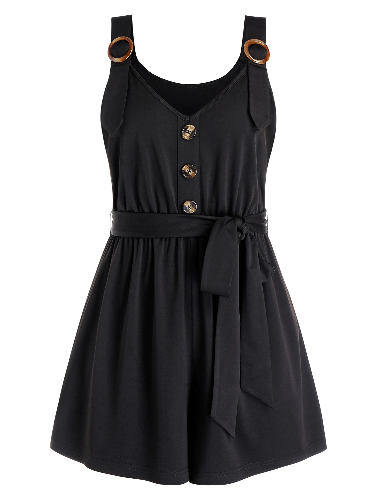 Plus Size Buttoned Sweetheart Neck Belted Romper