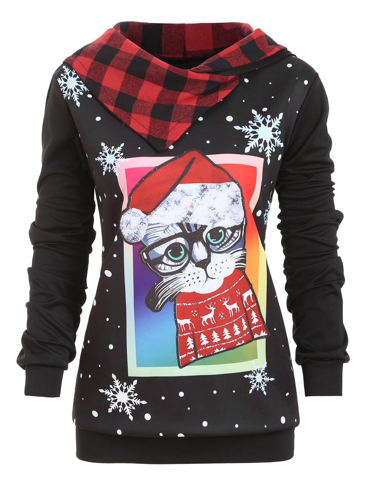 Plus Size Cat Snowflake Print Christmas Hoodie