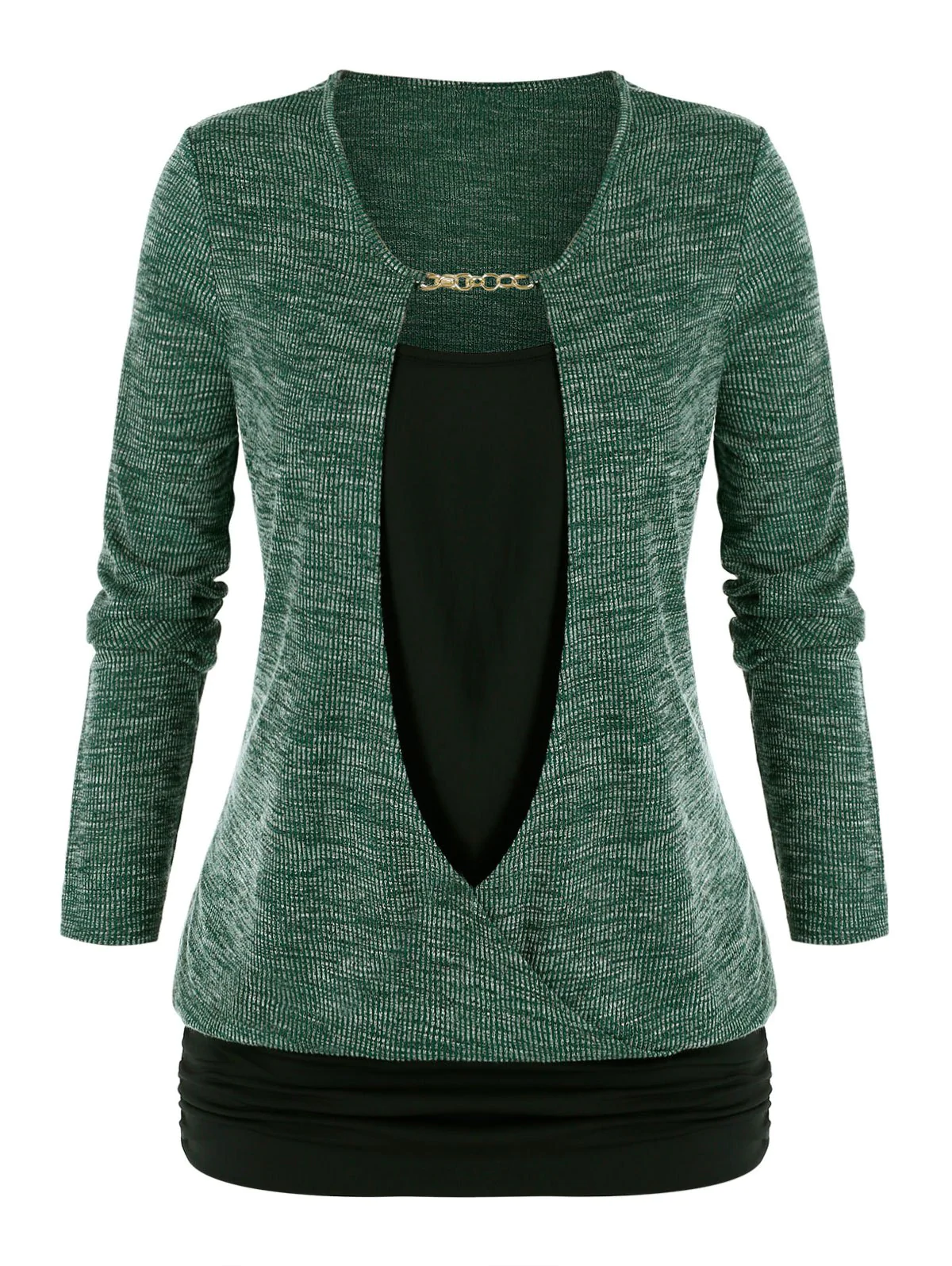 Plus Size Chain Embellished Mixed-media Ruched Sweater