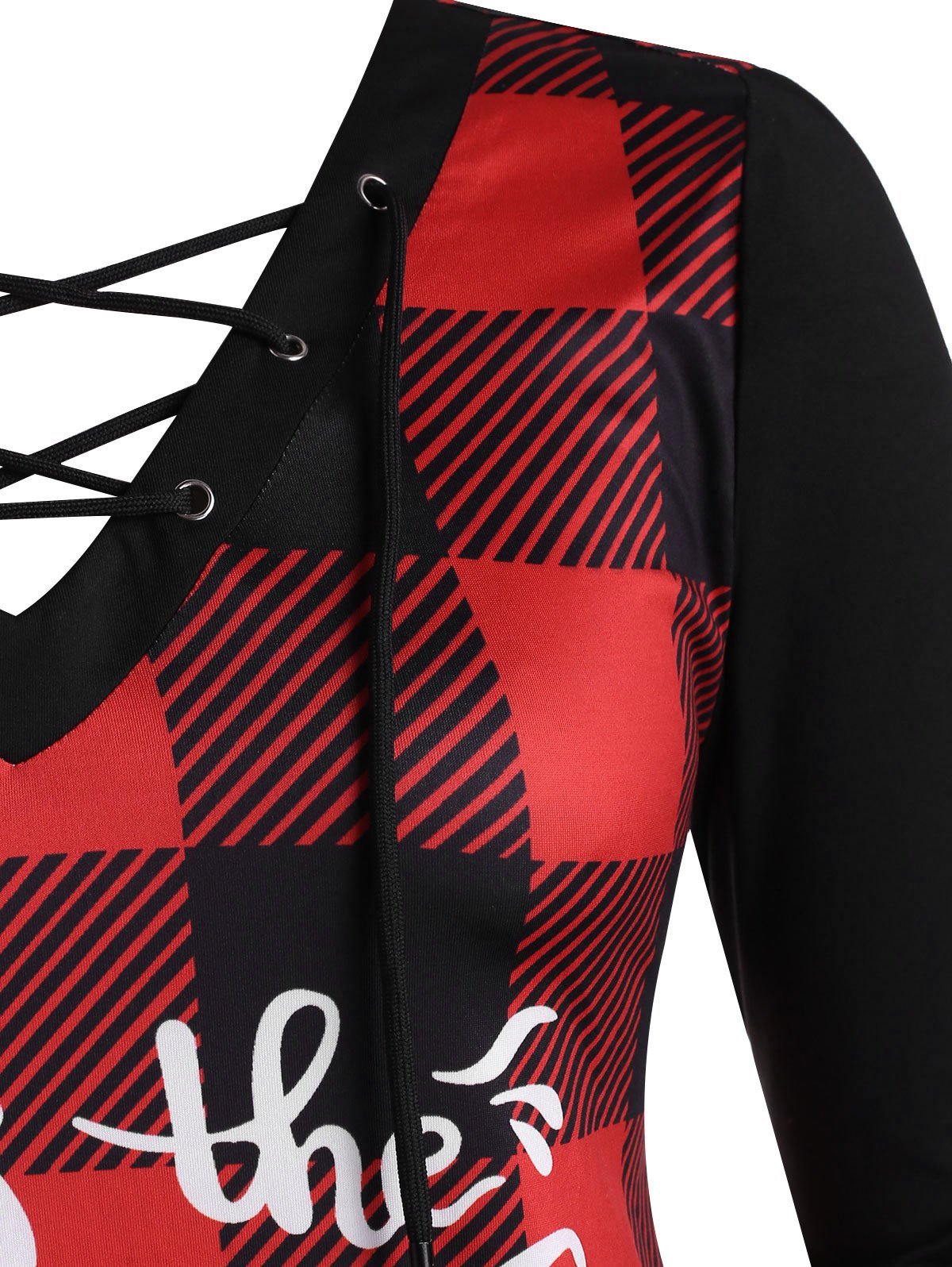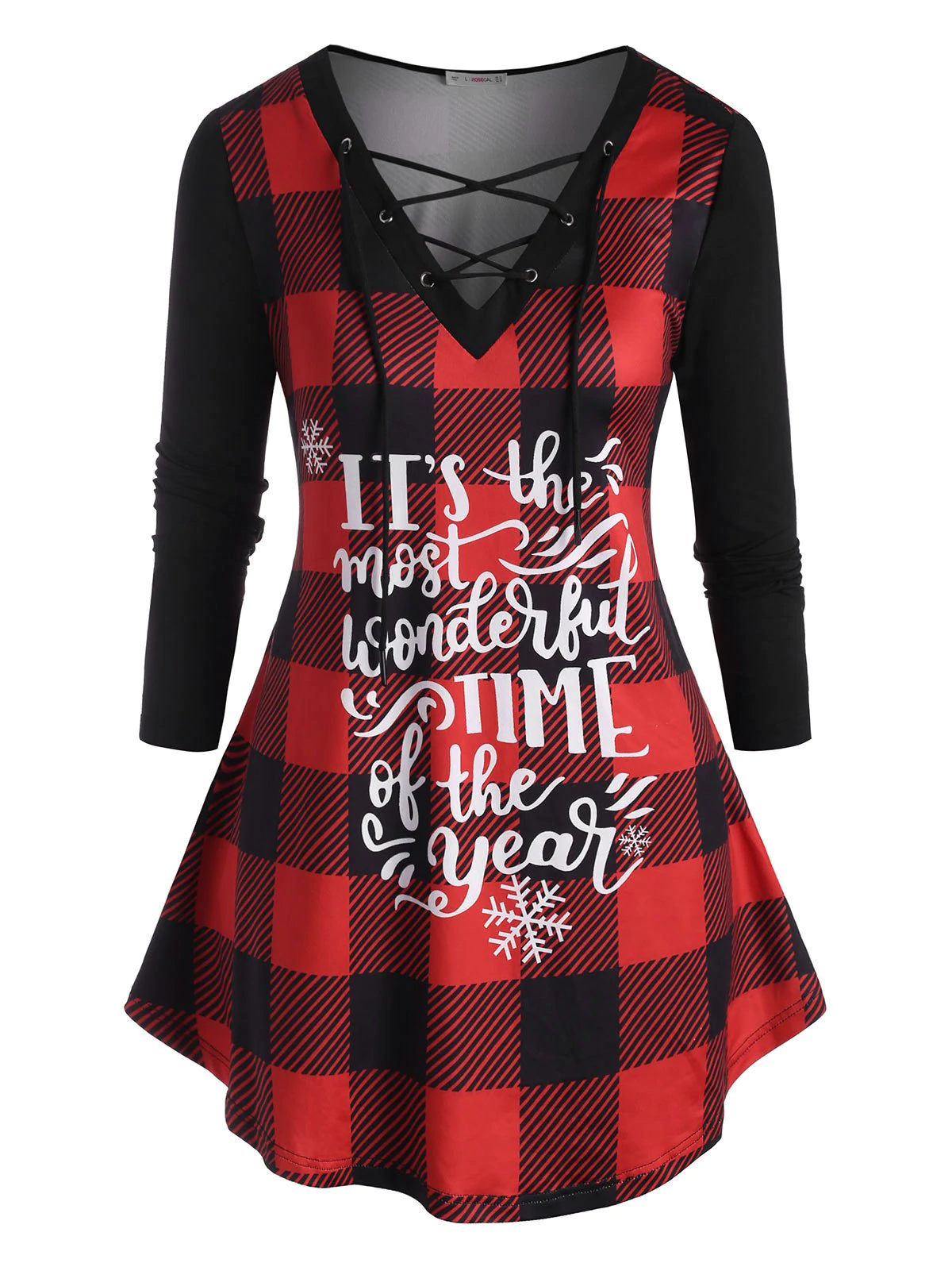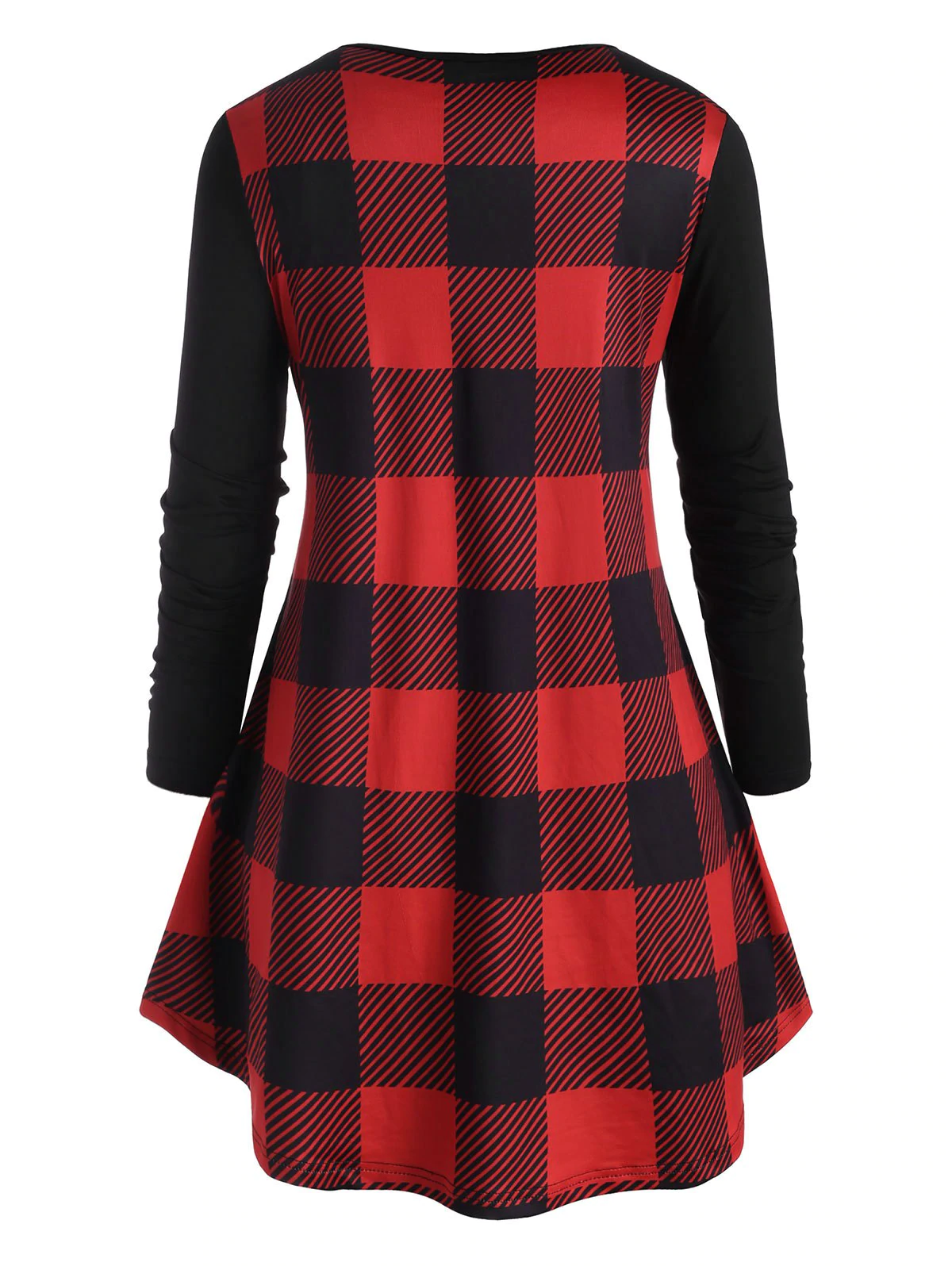 Plus Size Christmas Plaid Graphic Long Sleeve Tee
