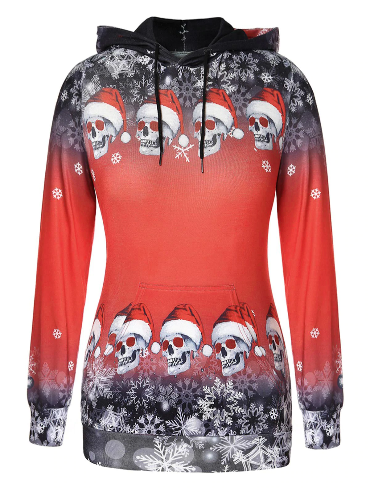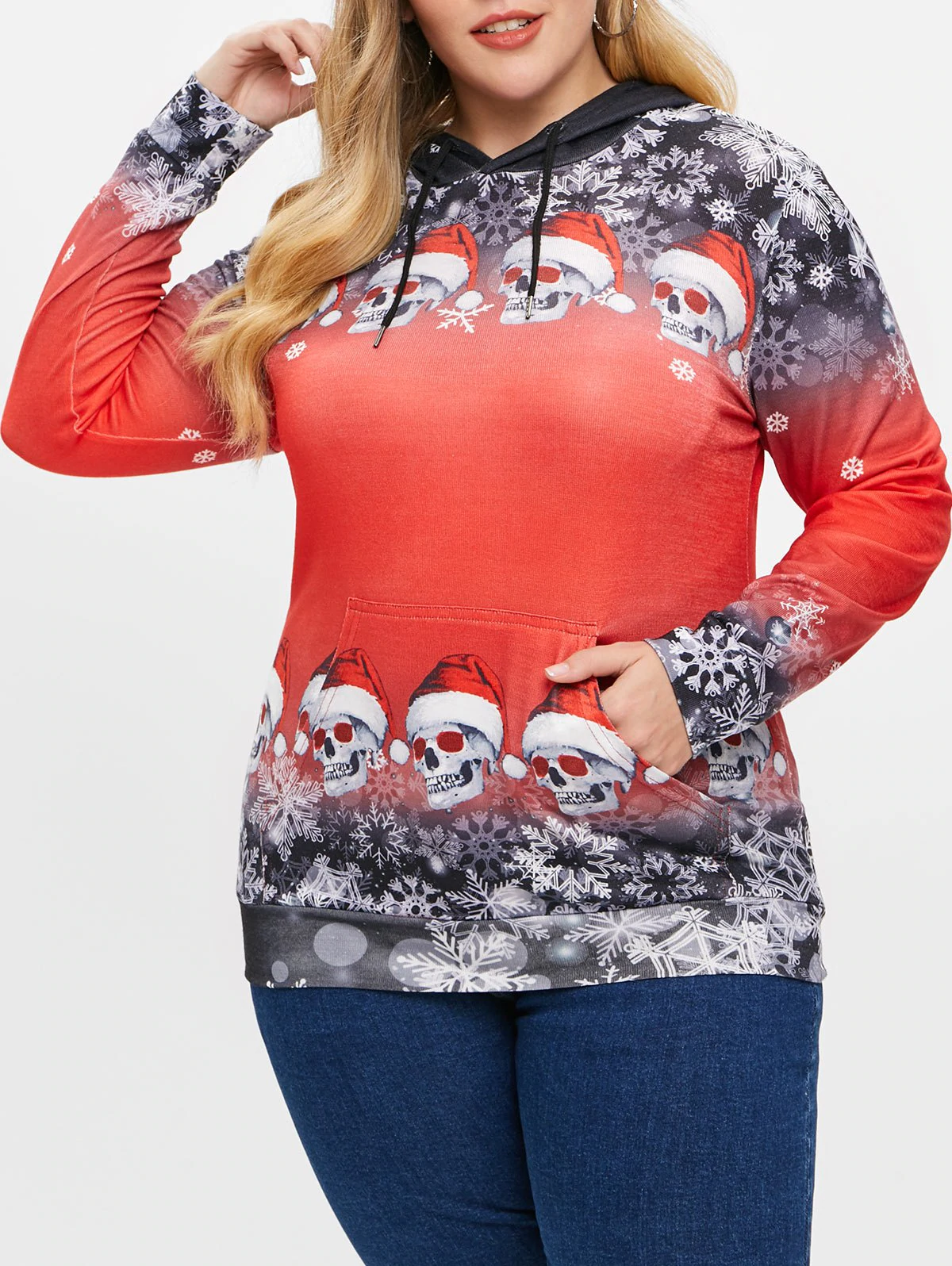 Plus Size Christmas Skulls Snowflake Pullover Hoodie