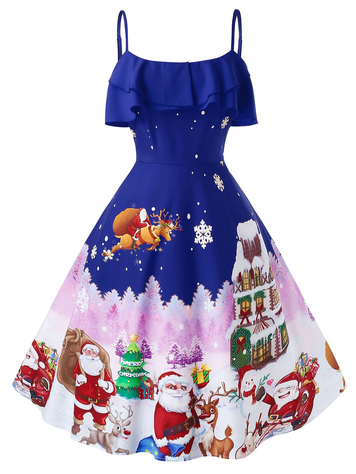 Plus Size Christmas Vintage Santa Claus Print Party Dress