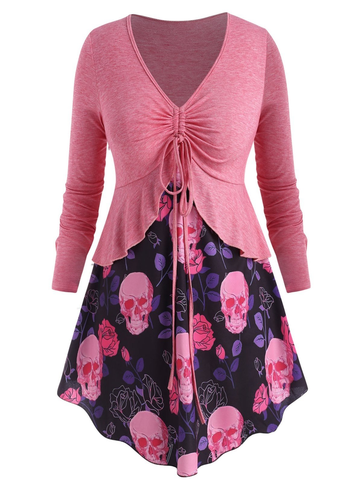 Plus Size Cinched Flounce Skull Floral Print Tee
