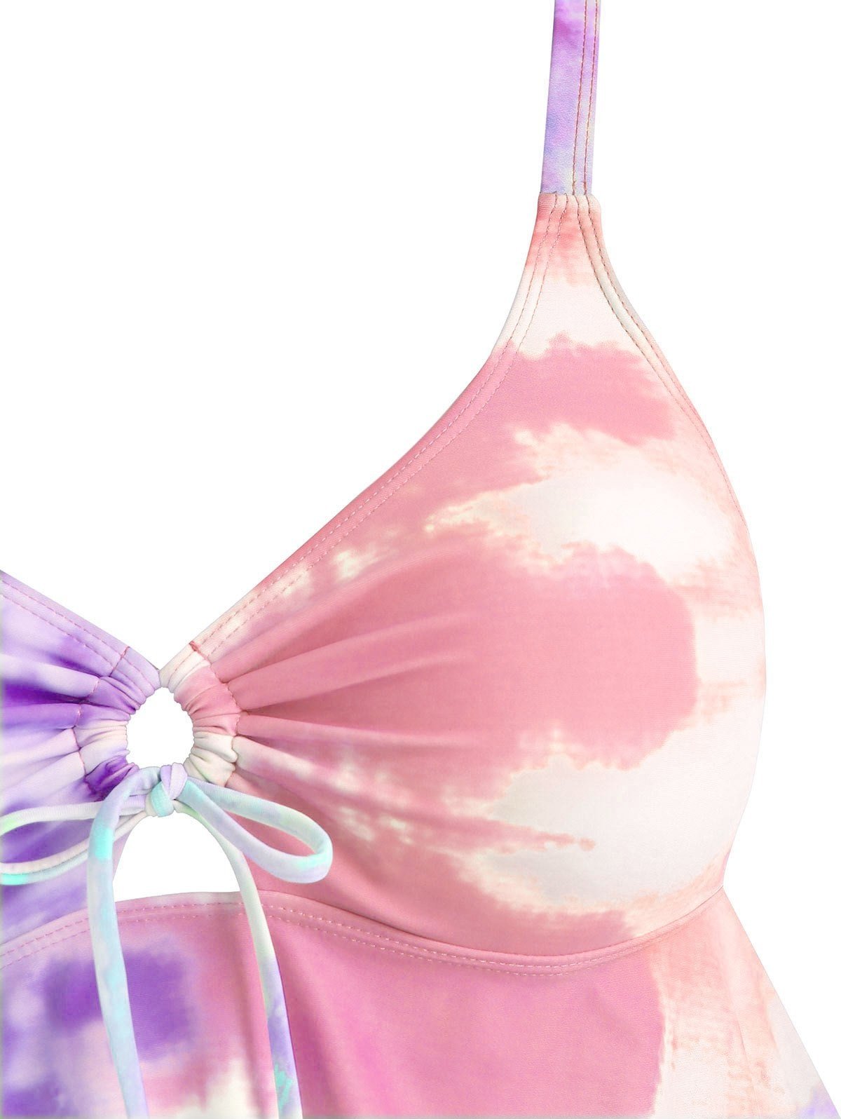 Plus Size Cinched Tie Dye Handkerchief Tankini Swimwear
