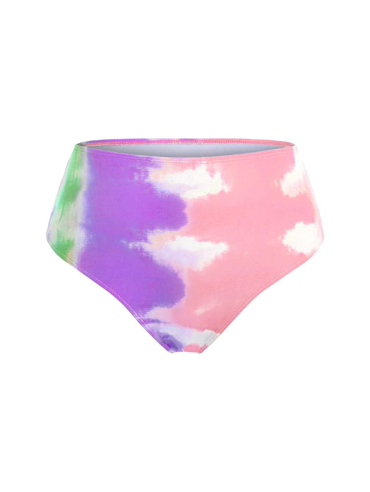 The brilliant tie-dye tankini exudes a sophisticated vibe. The top has an empire-waist silhouette with handkerchief hemline and cinched detail. Includes a matching mid-waist swim bottom. Scrunch them up for holiday.