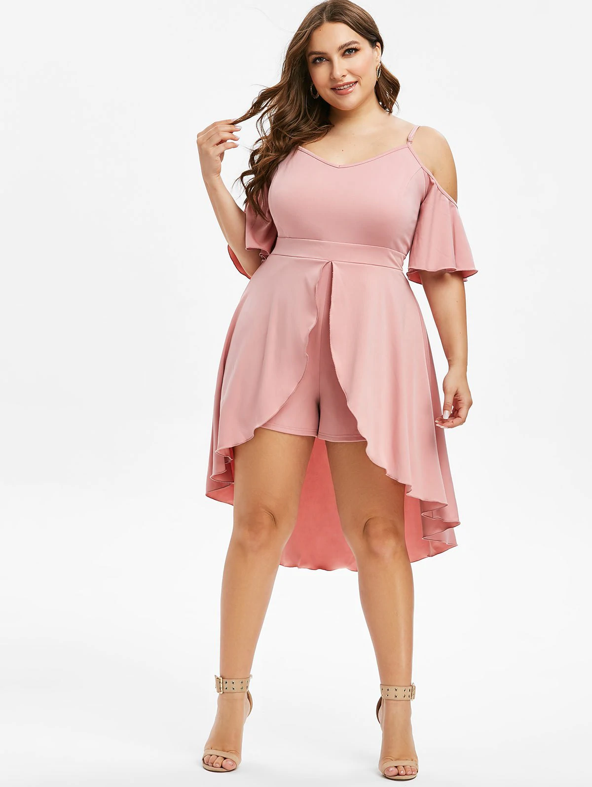 Plus Size Cold Shoulder High Low Skirted Romper