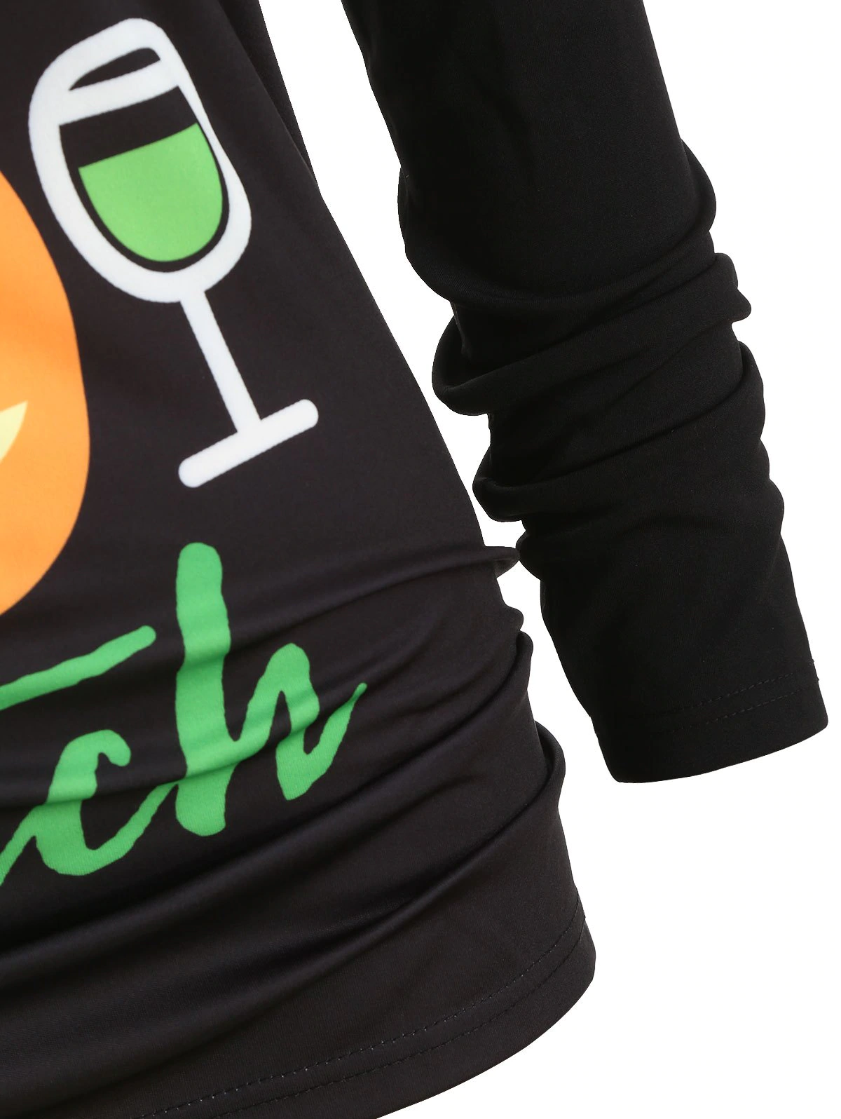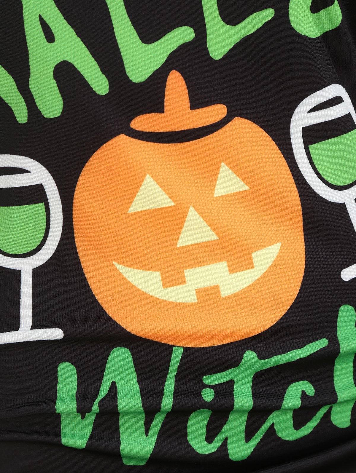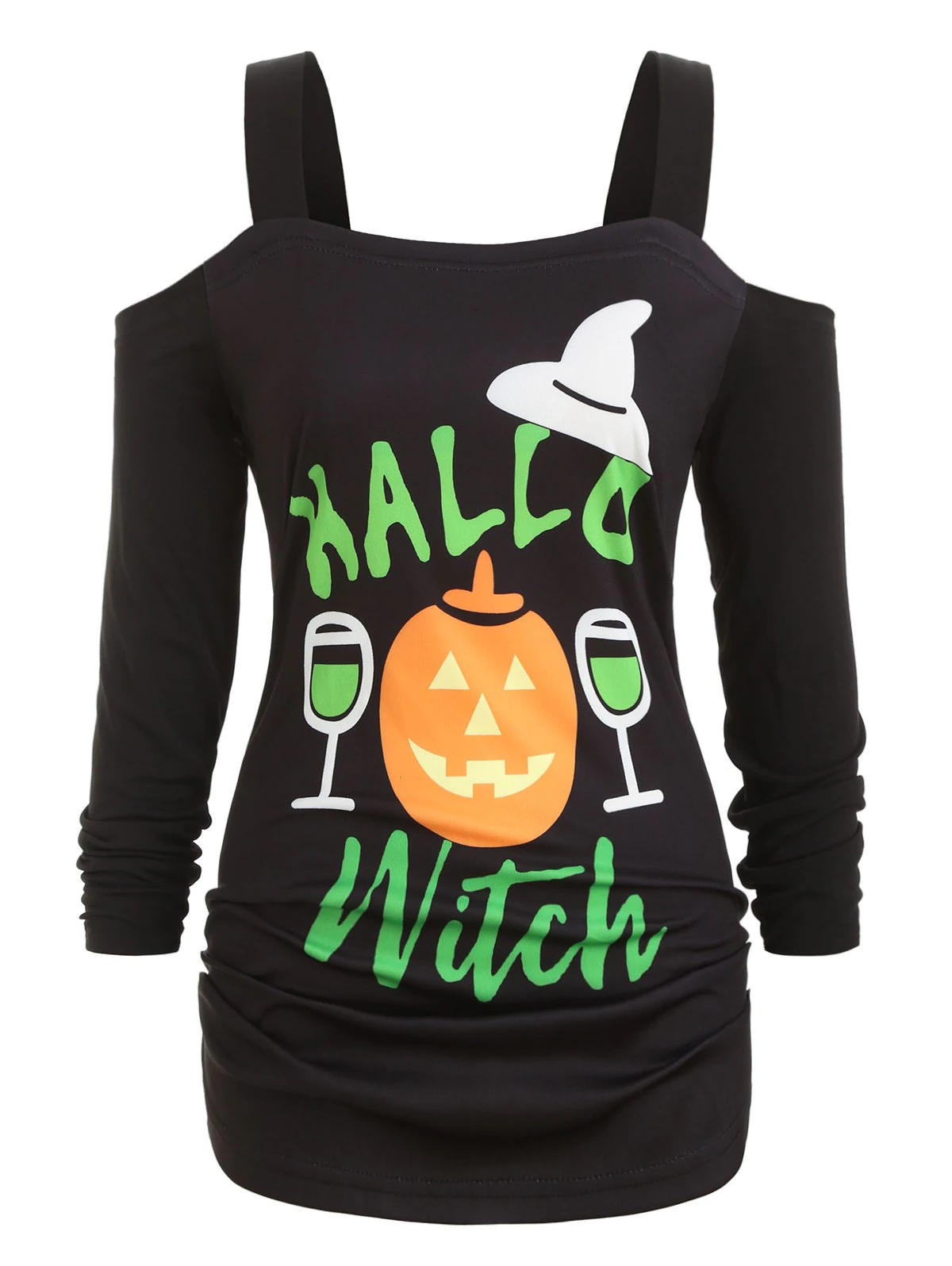 Plus Size Cold Shoulder Pumpkin Letter Print Halloween T Shirt