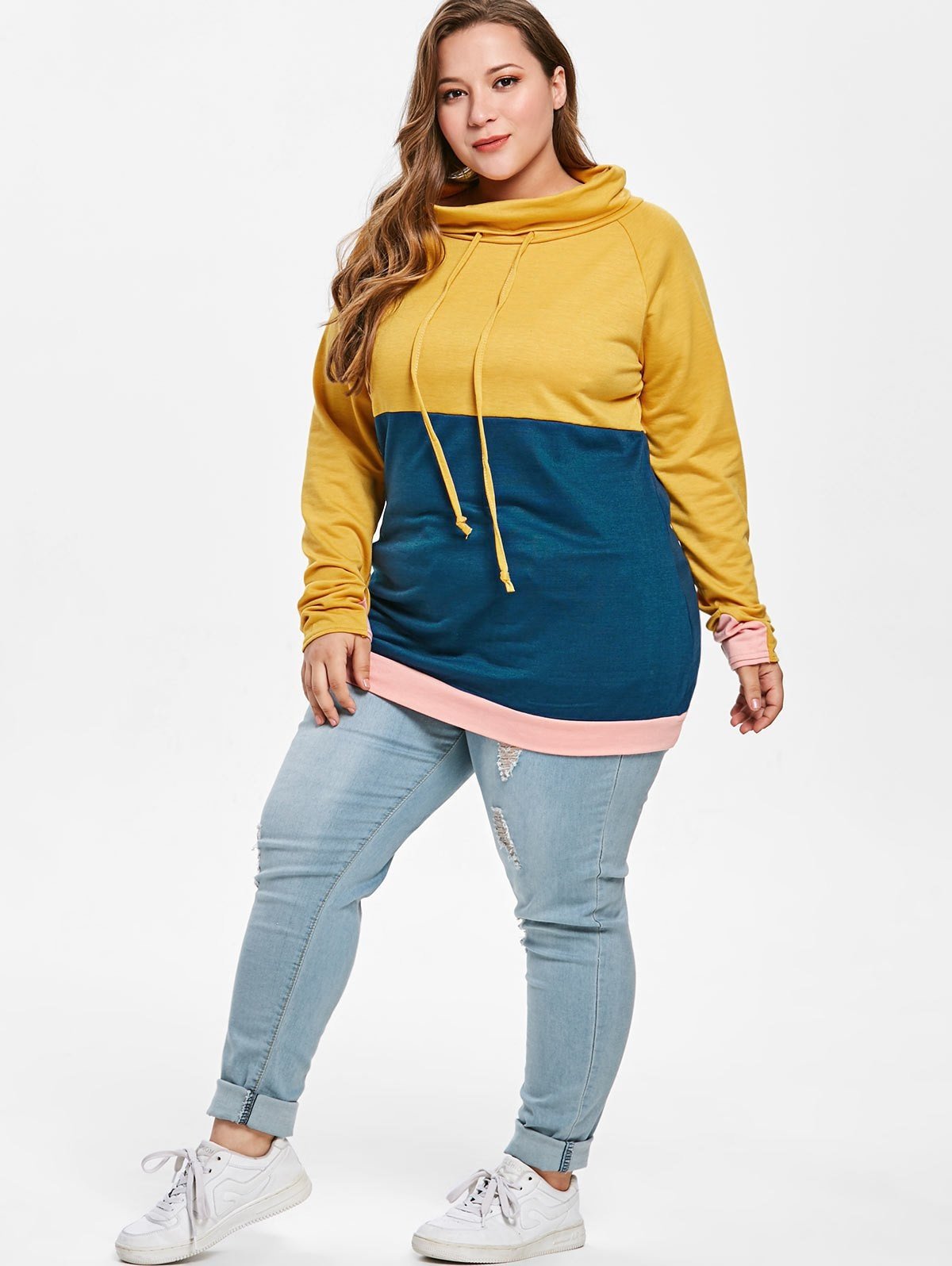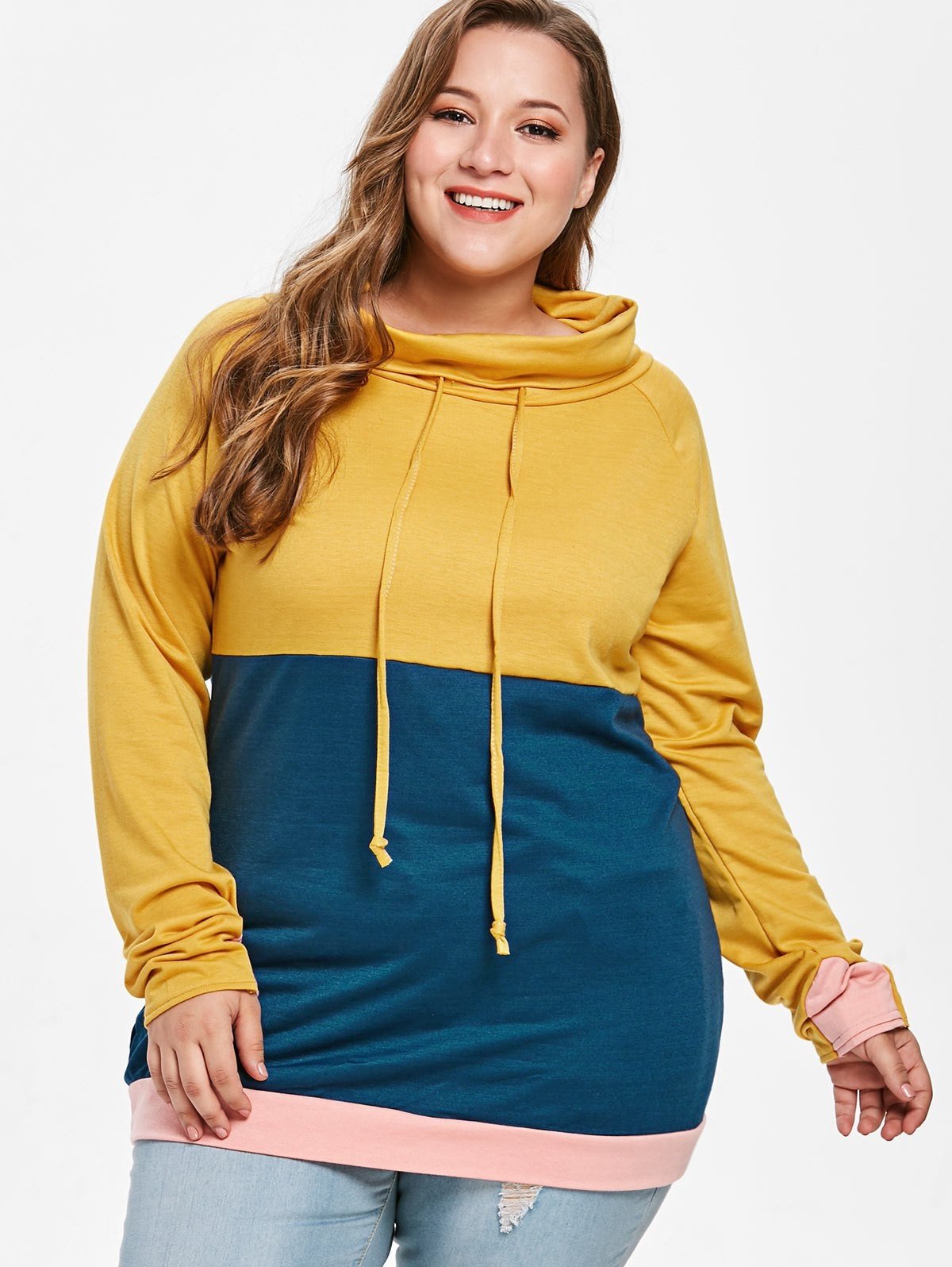 Plus Size Color Block Tunic Sweatshirt