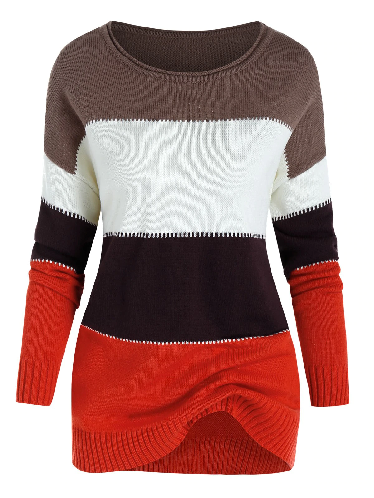 Plus Size Color Blocking Drop Shoulder Tunic Sweater