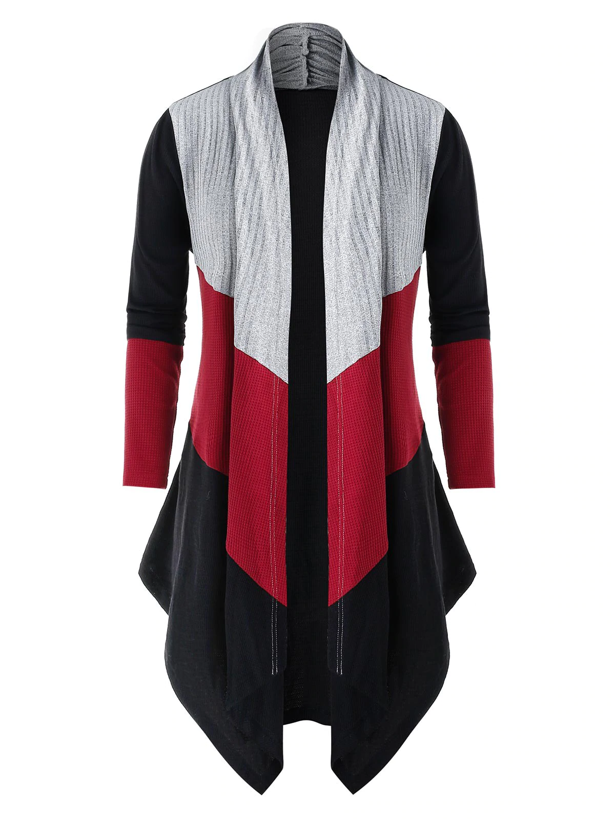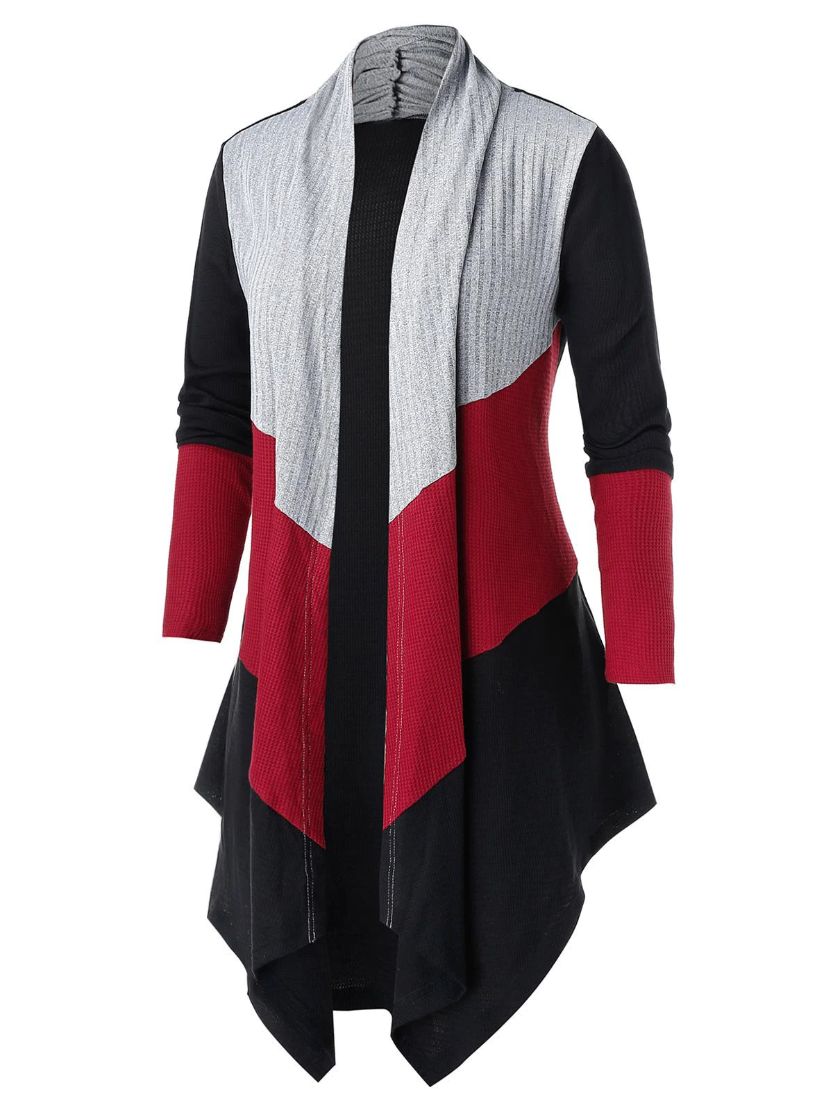 Plus Size Colorblock Open Asymmetrical Knit Cardigan