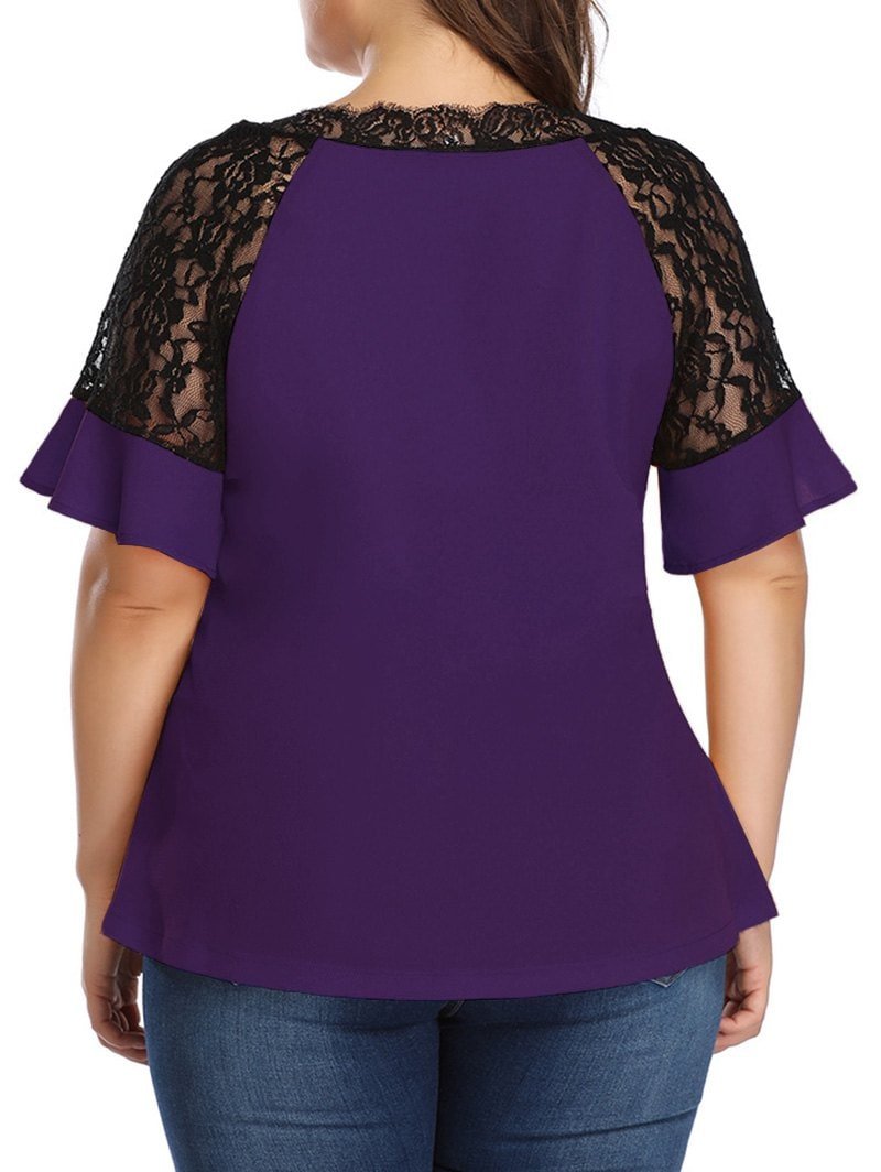 Flare cuffs details and contrast lace complete the boho-chic look of a sexy plunging-neckline top.
