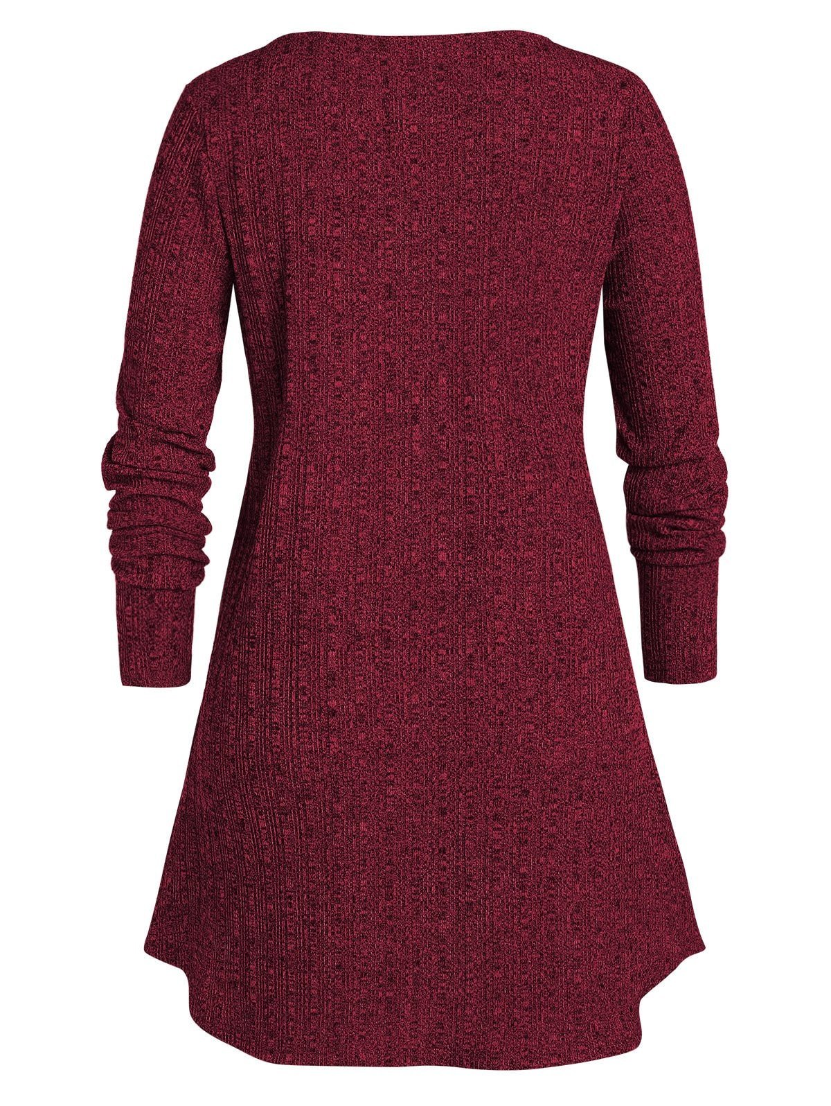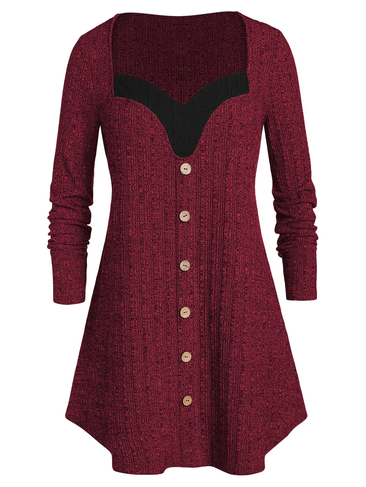 Plus Size Contrast Sweetheart Collar Button Sweater