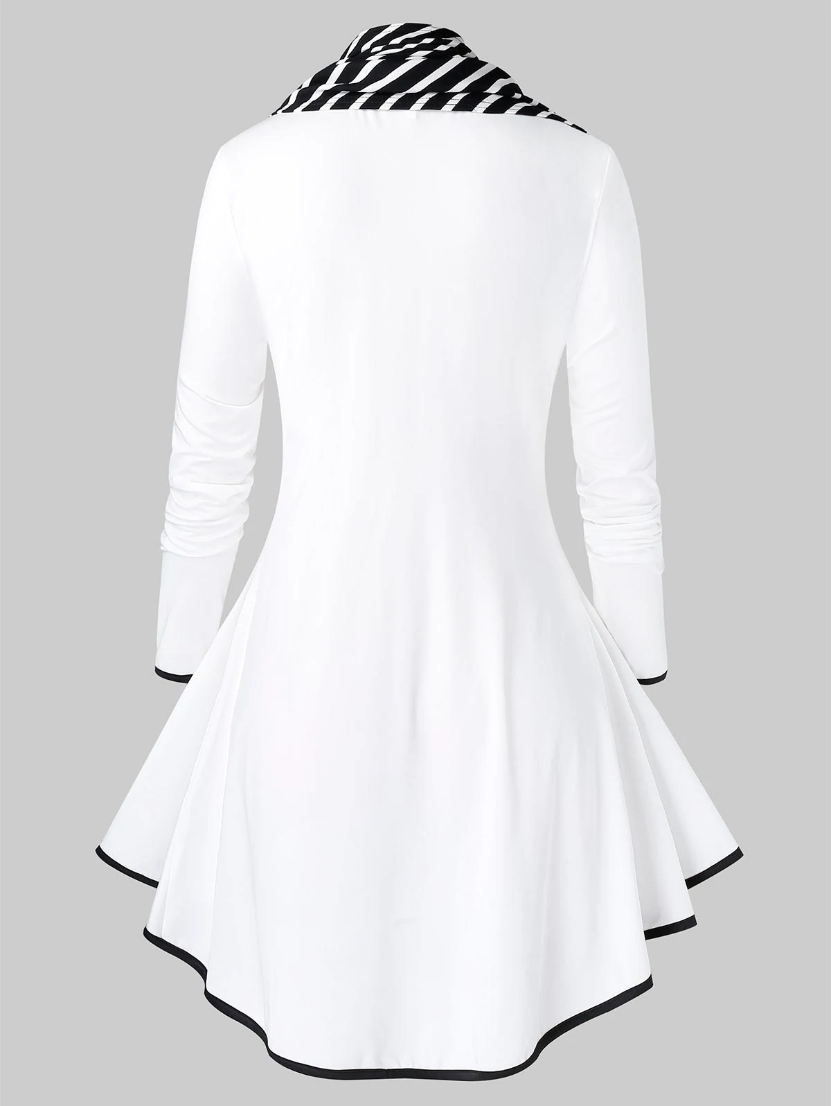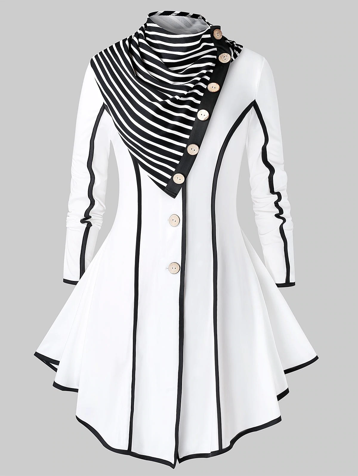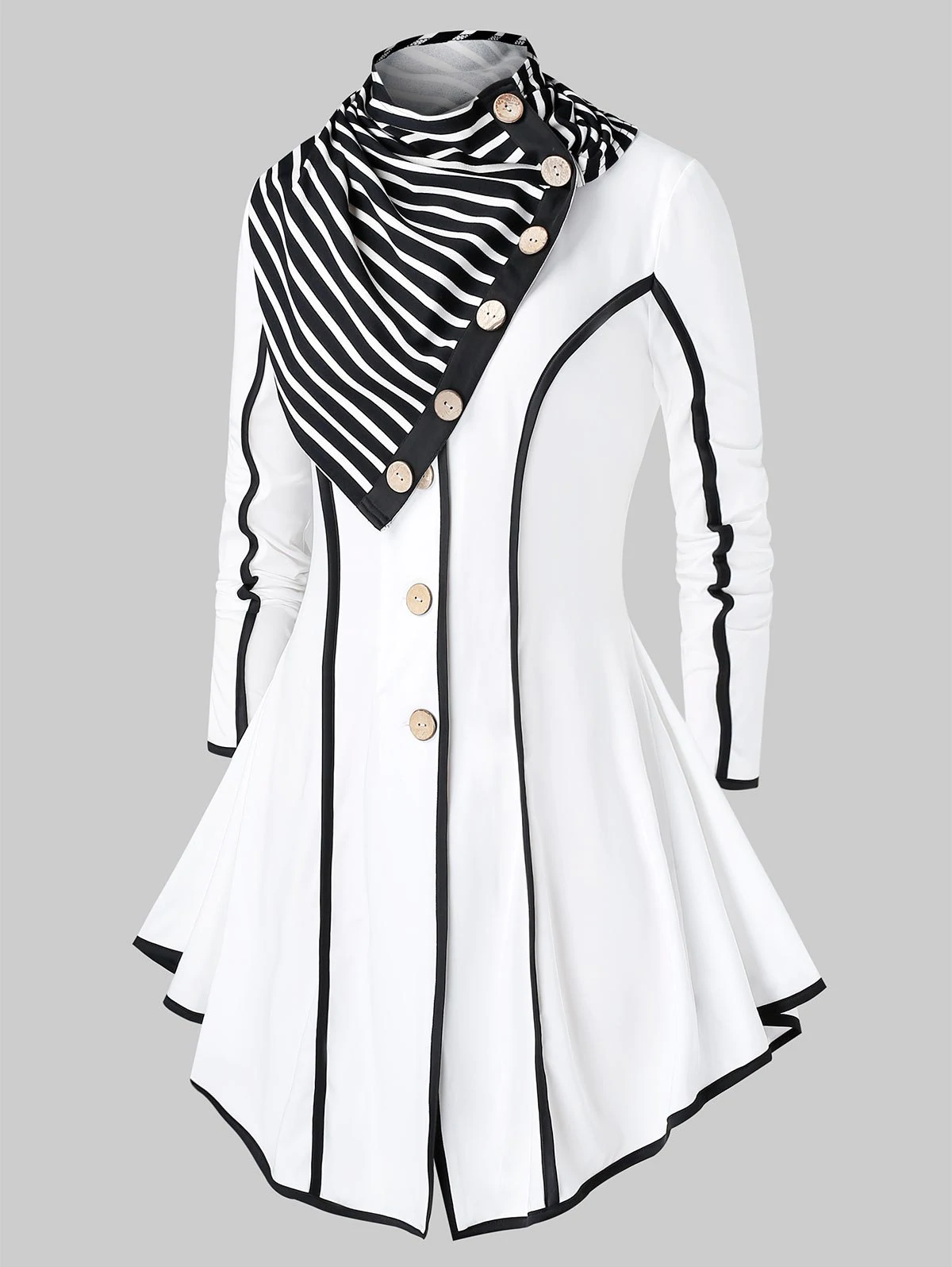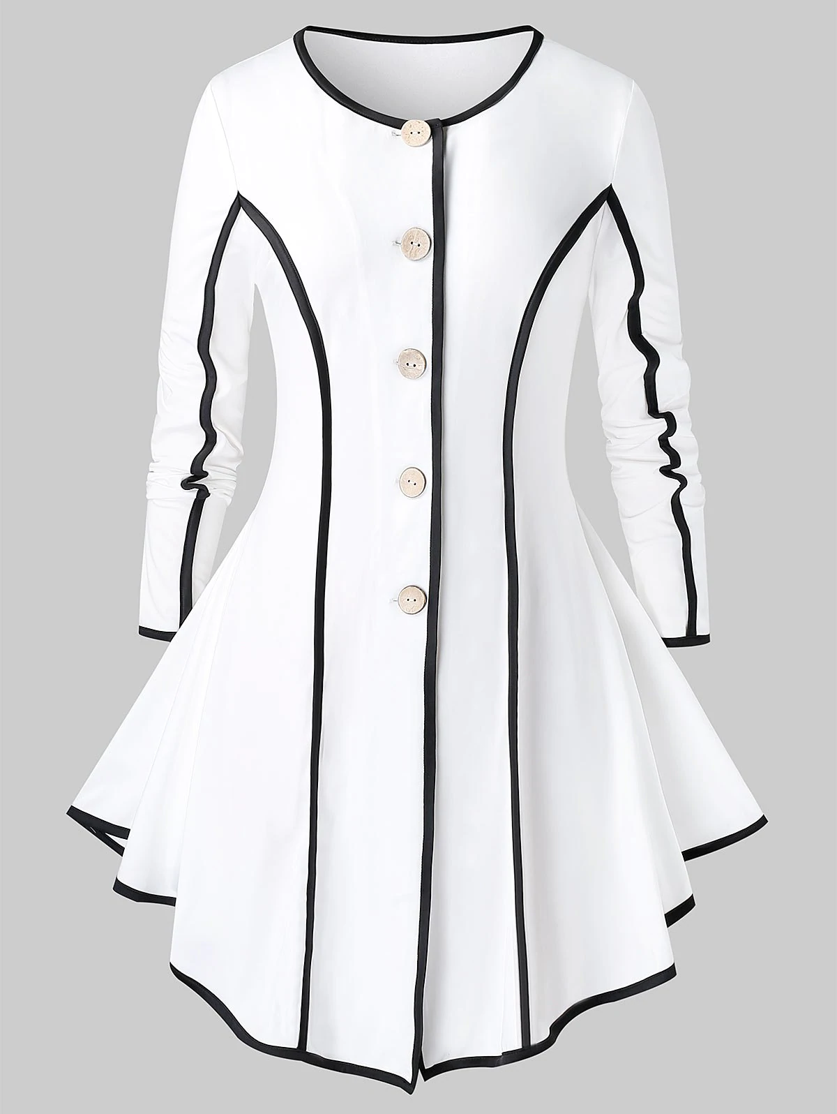Plus Size Contrast Trim Single Breasted Skirted Coat With Scarf