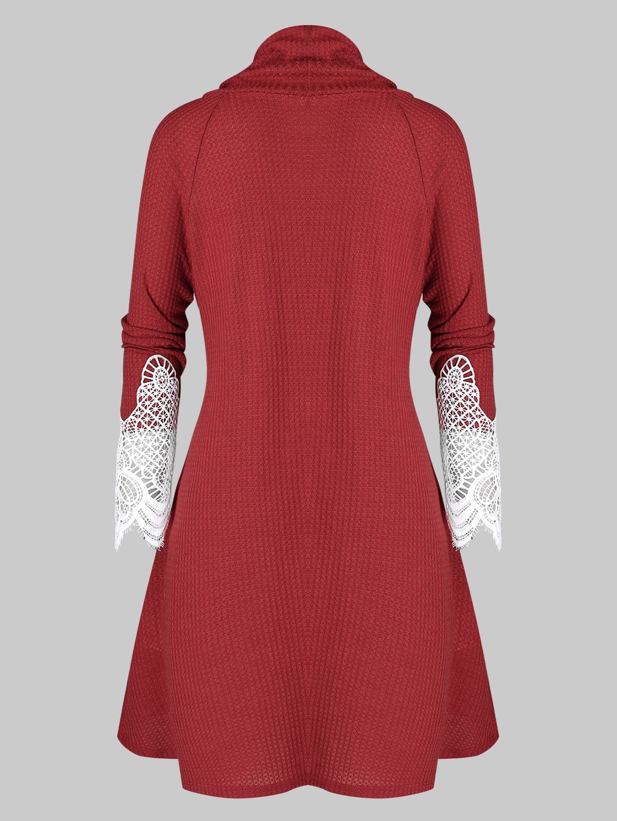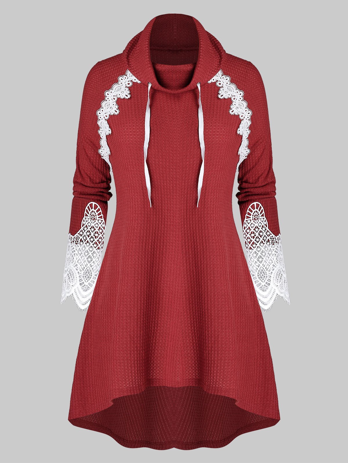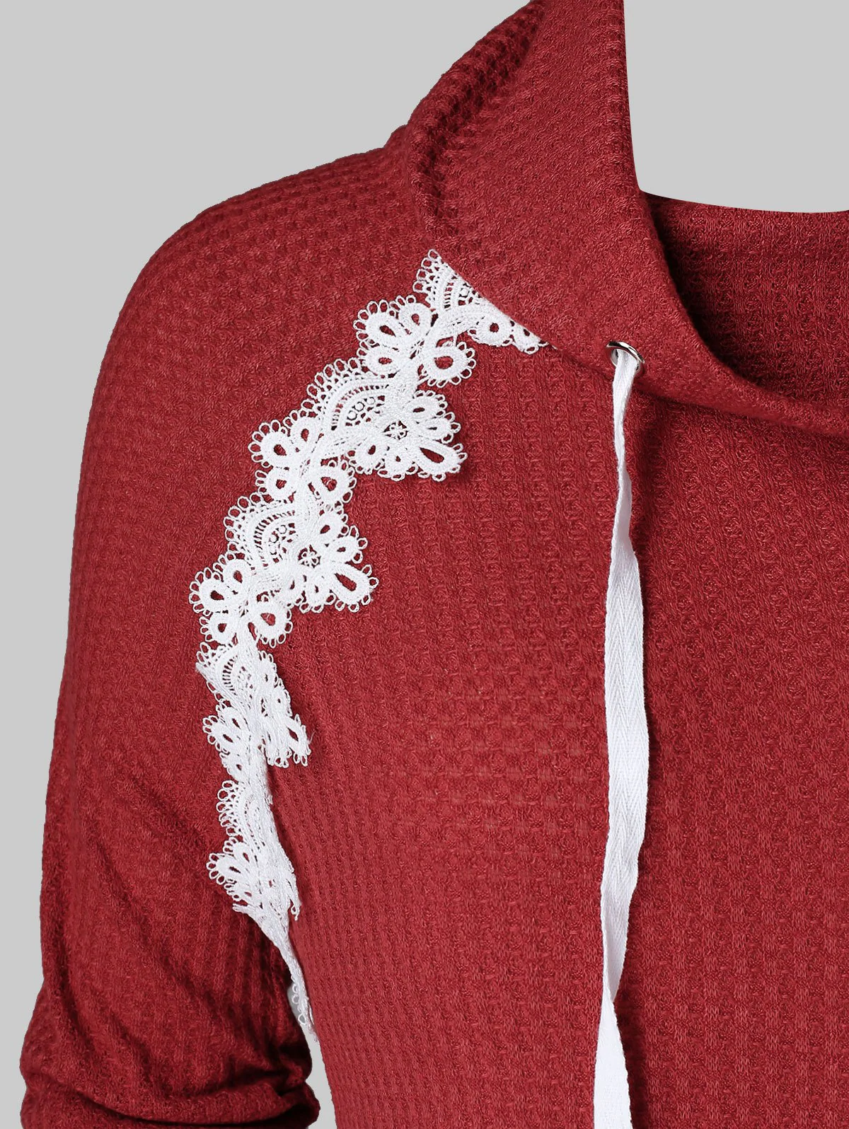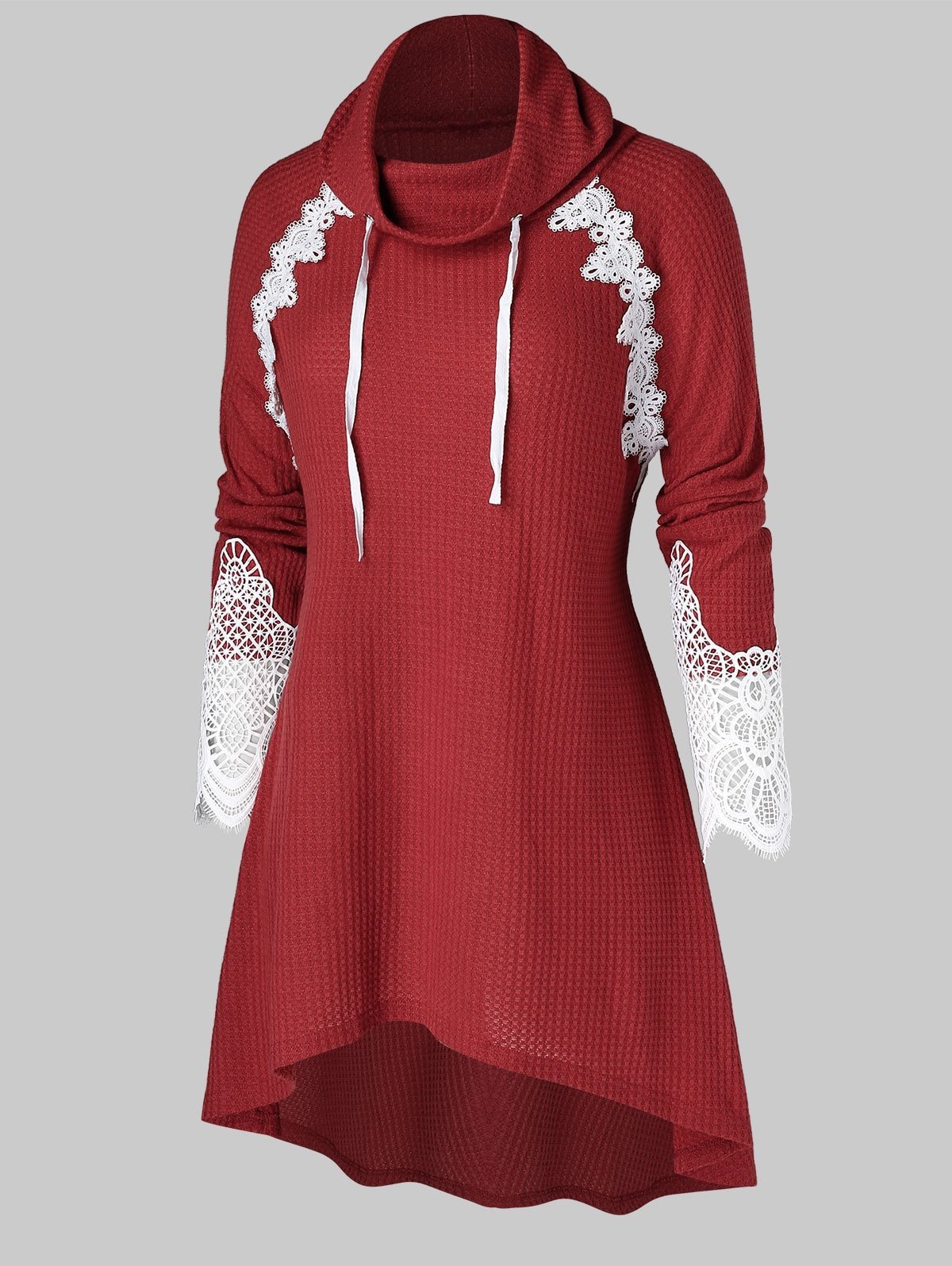 Plus Size Cowl Neck Applique Panel Drawstring Knit Sweater