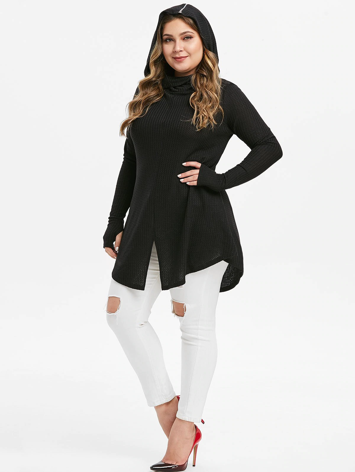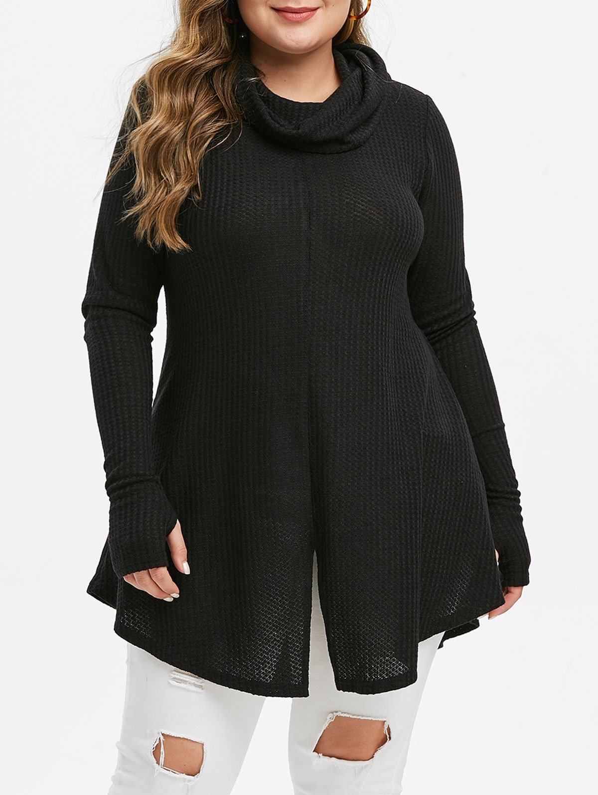 Plus Size Cowl Neck Slit Tunic Knitwear