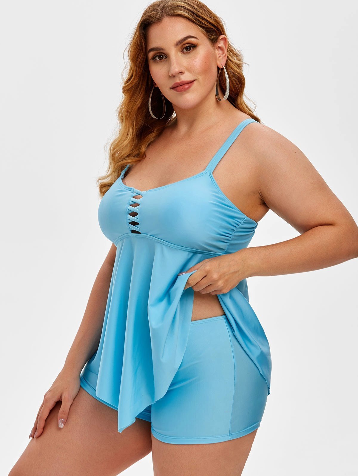 Plus Size Crisscross Asymmetric Empire Waist Tankini Swimwear