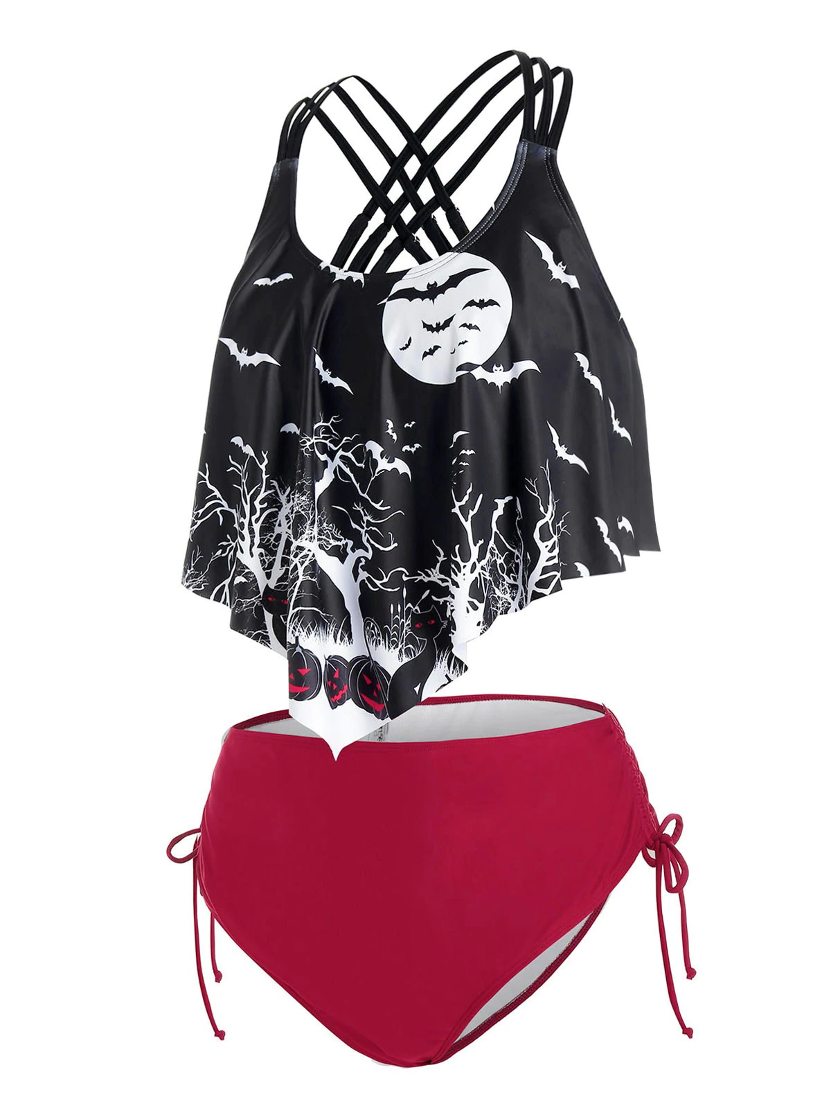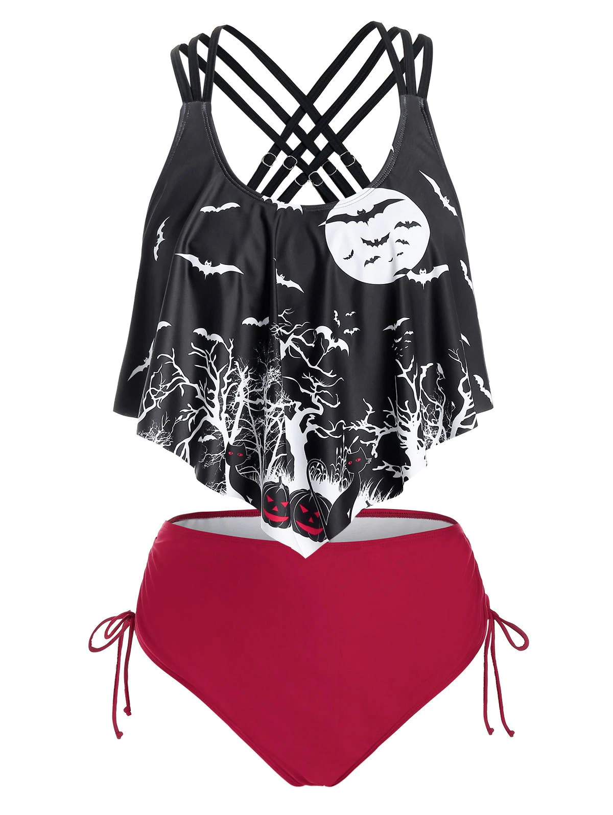 Plus Size Crisscross Bats Print Cinched Tankini Swimwear