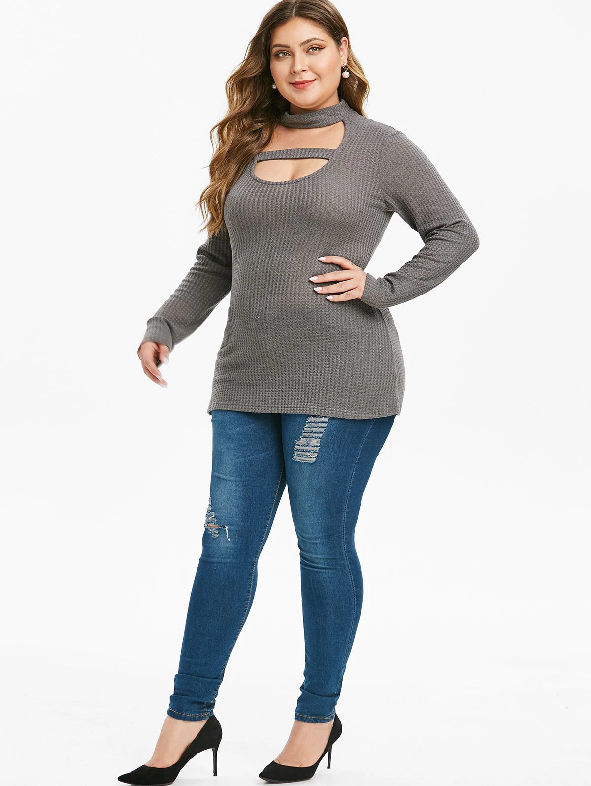 Plus Size Cut Out Heathered Knitwear