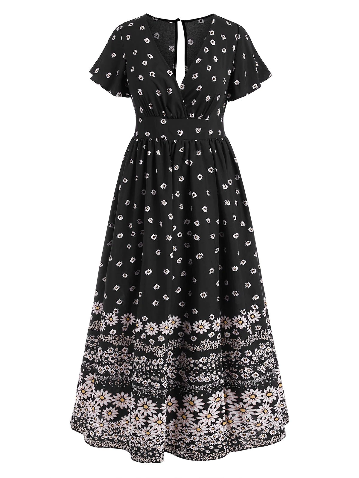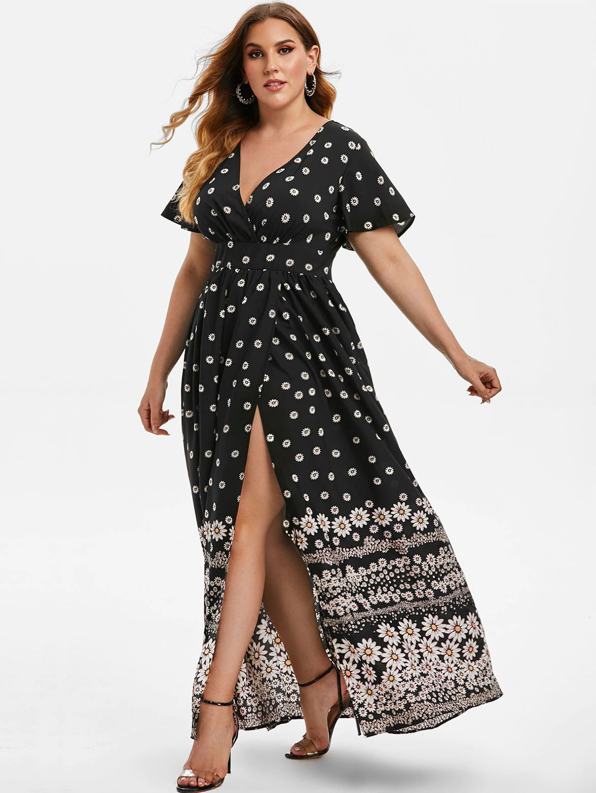Plus Size Daisy Print Maxi Dress